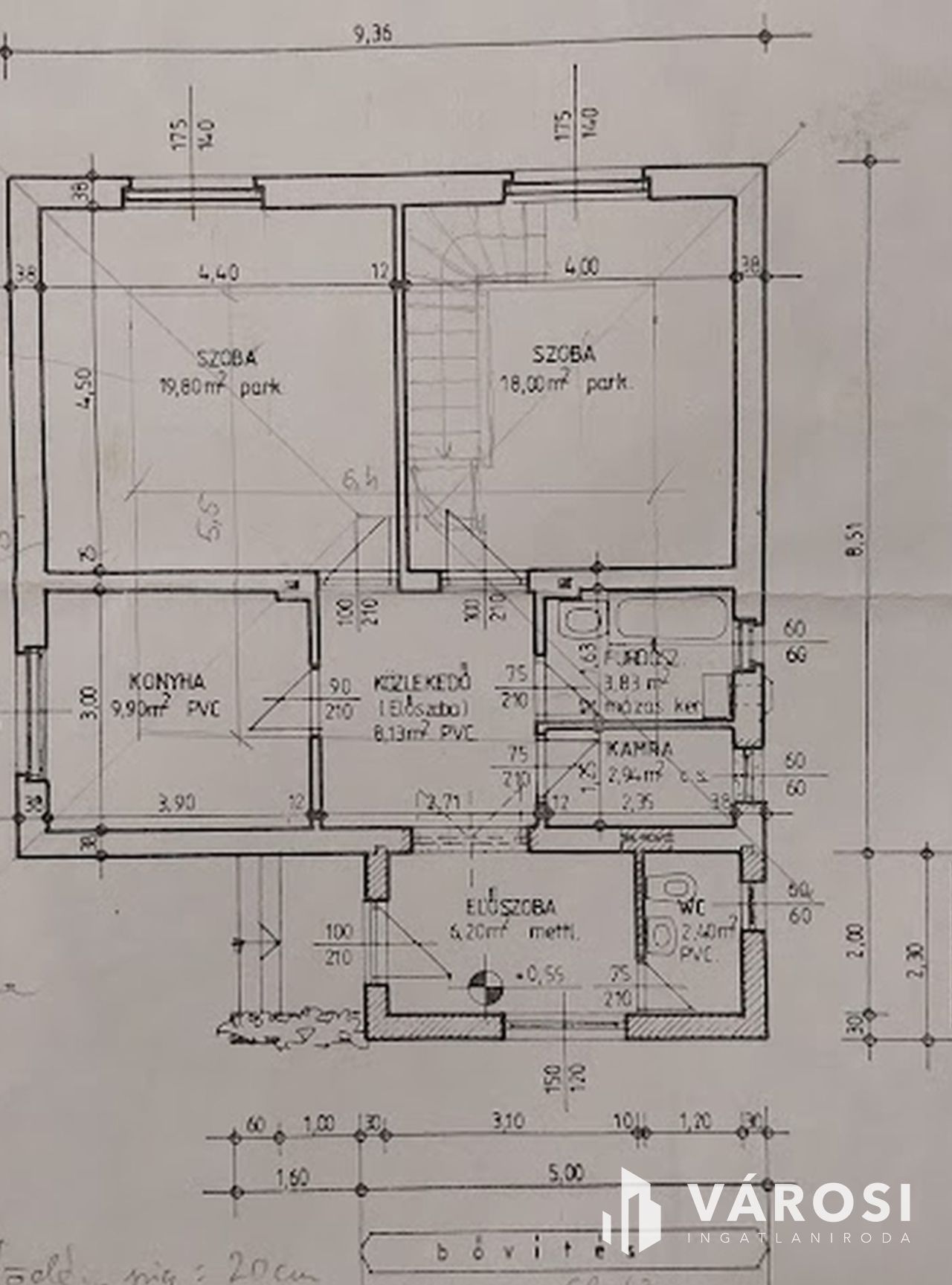 Az utcafronti ingatlan 2 szoba, konyha, fürdőszoba, külön wc található, illetve mosókonyha és spájz is.
