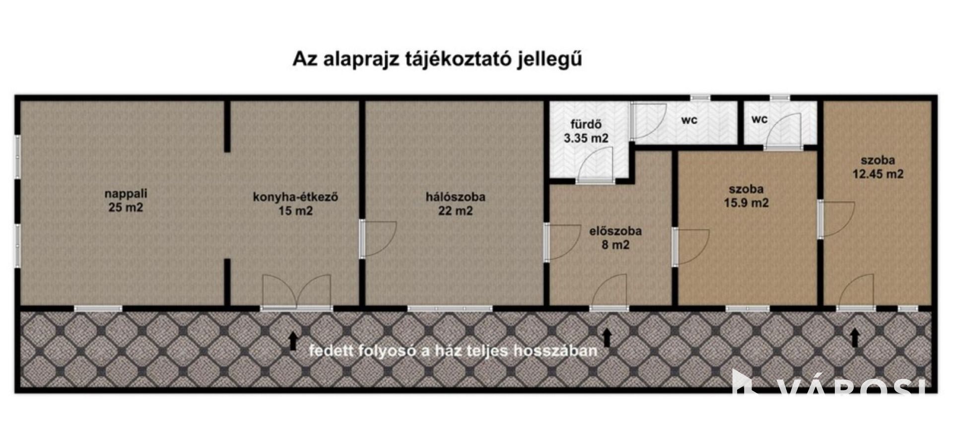 - lakótér: nappali plusz 3 szoba, konyha-étkező, előszoba, fürdő, 2 wc