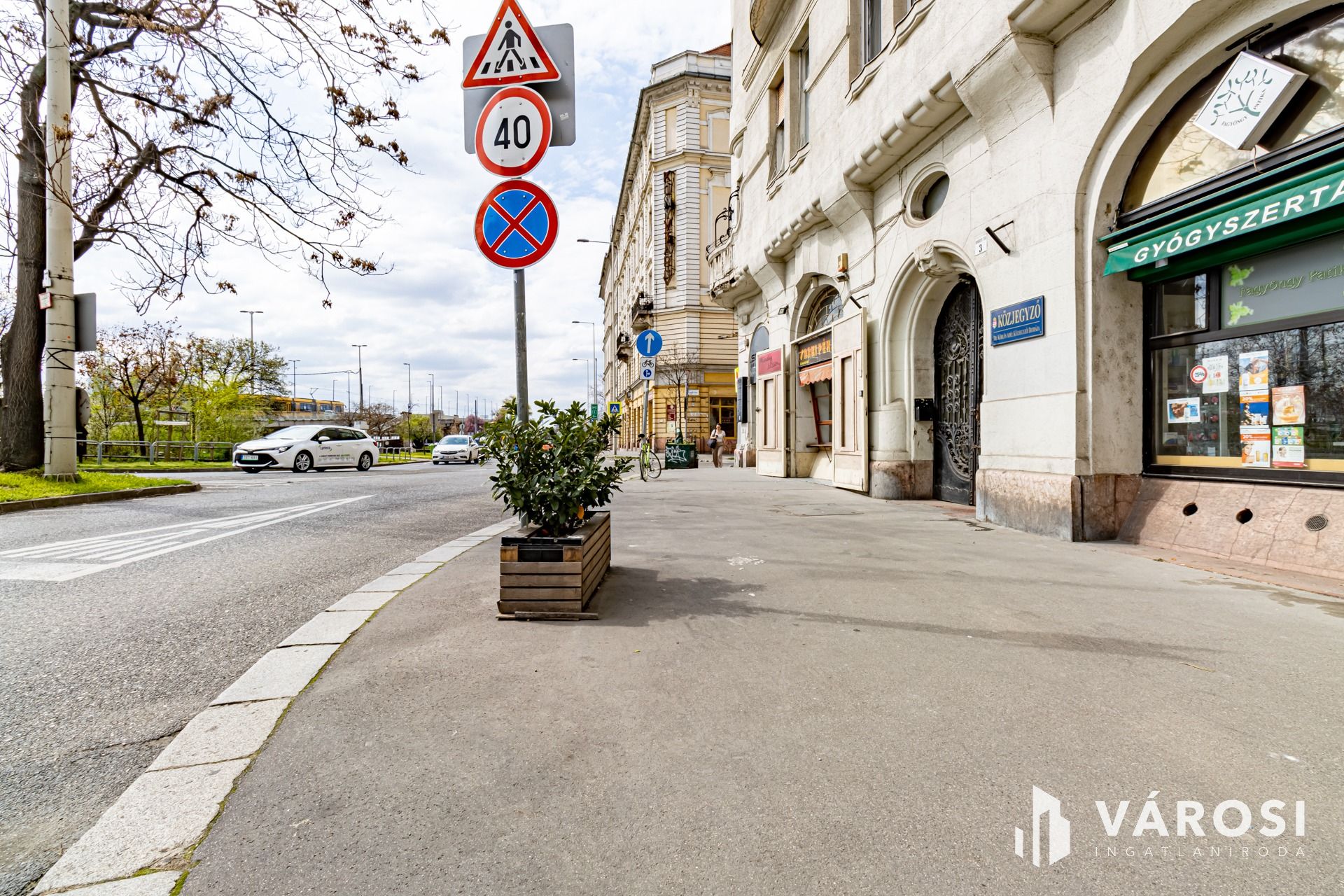 This is not a leasehold, not a business sale including a company—this is a simple ownership sale of a retail space at Boráros Square, at the junction of Ráday Street and Lónyai Street, right by the Petőfi Bridge ramp. The location boasts heavy vehicle traffic and significant pedestrian flow, just a few meters from a crosswalk.