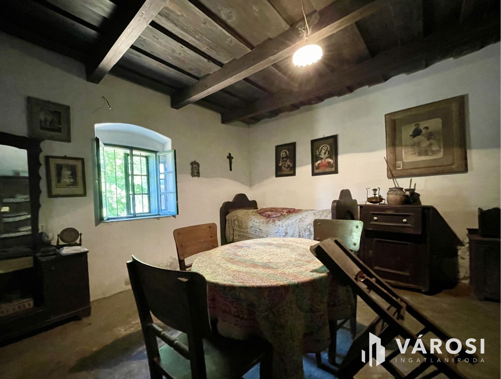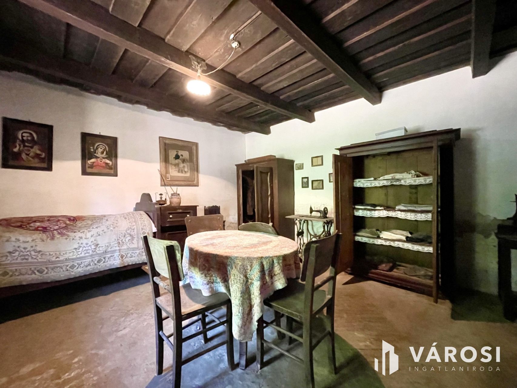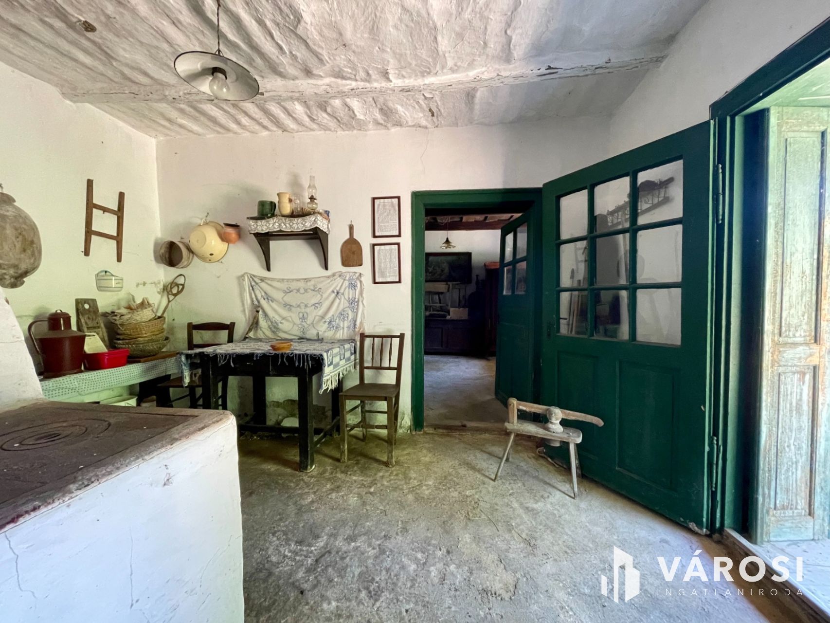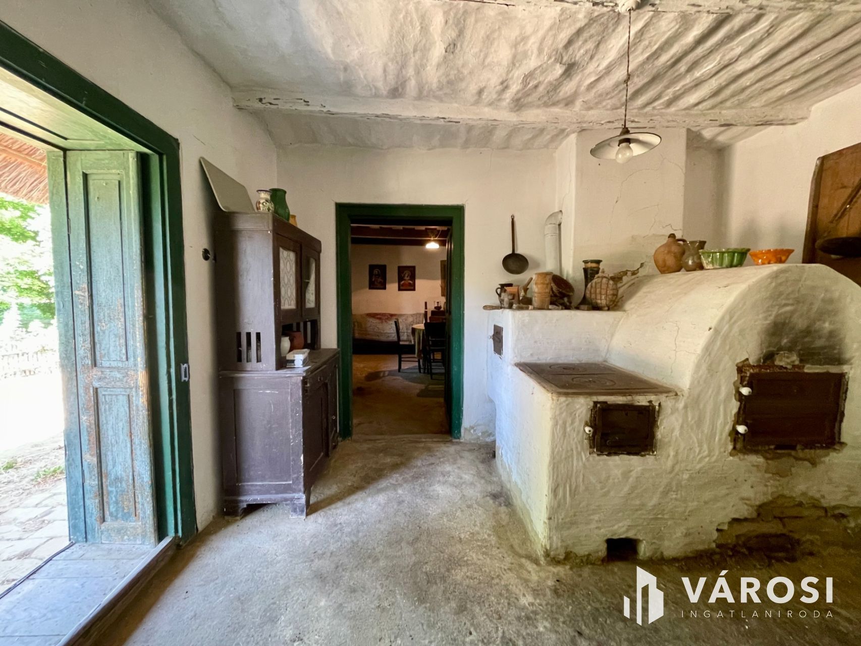 A 68 m²-es nádtetős főépület megőrizte eredeti báját: döngölt padló, gerendás mennyezet, működő épített kemence és vegyestüzelésű kályha teremti meg a múltidéző hangulatot. A két szoba, konyha és kézműves műhely autentikus vidéki miliőt kínál, ahol jelenleg villany van, a víz bevezetése a leendő tulajdonosra vár.
