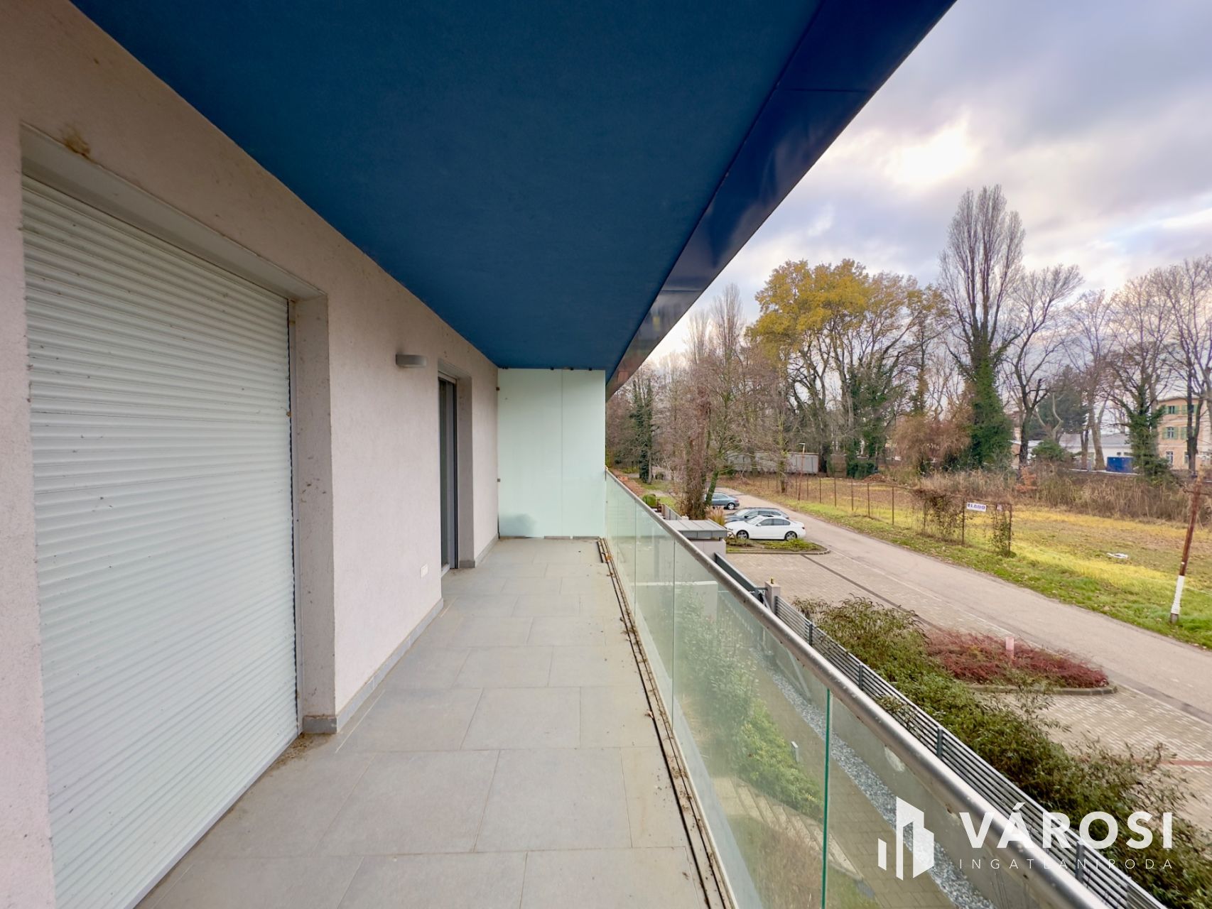 A lakás az 1. emeleten található, nappali+3 hálószobás, 86,87 m²-es. Minden szobából közvetlenül megközelíthető a 31,72 m²-es terasz.