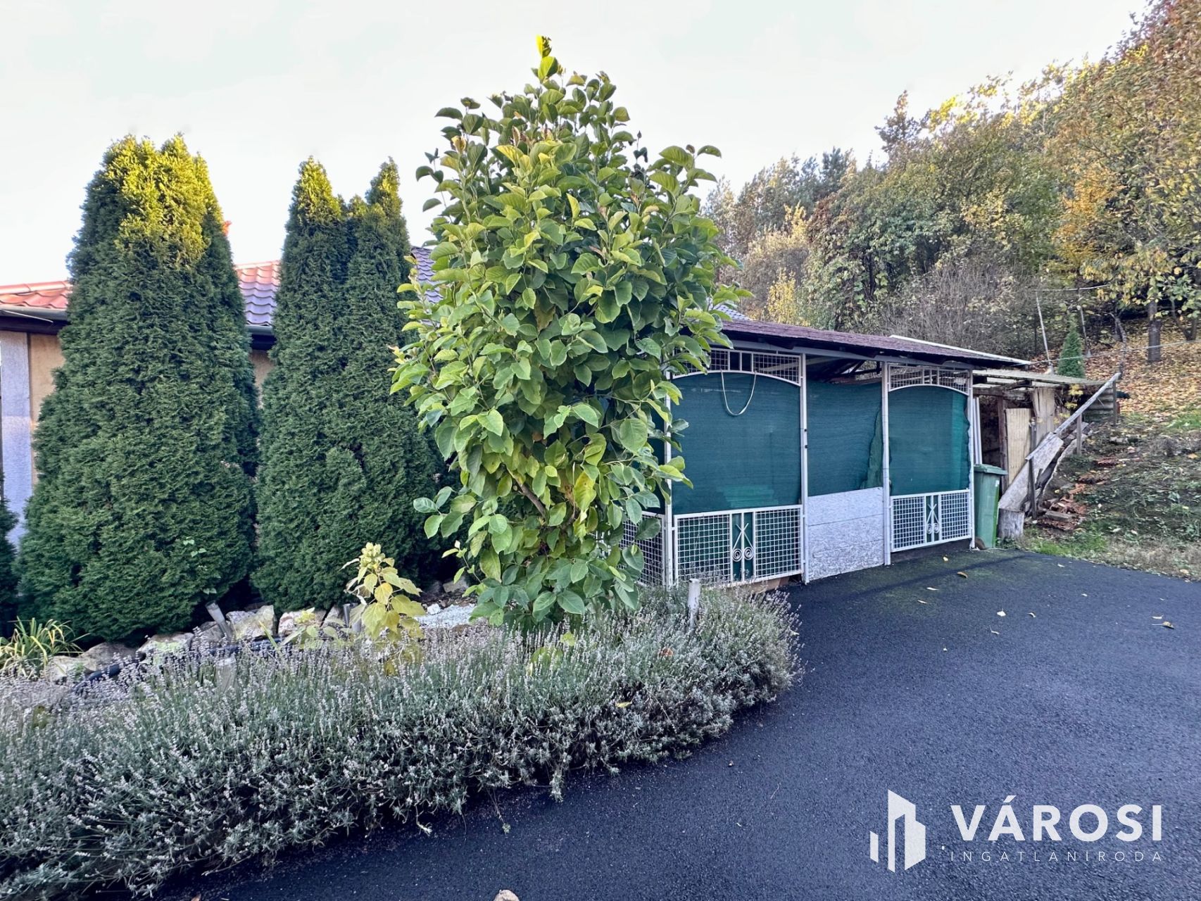 Az épület mellett parkosított zöldterület, kerti tó, valamint, aszfaltozott, felszíni gépkocsibeálló került kialakításra.