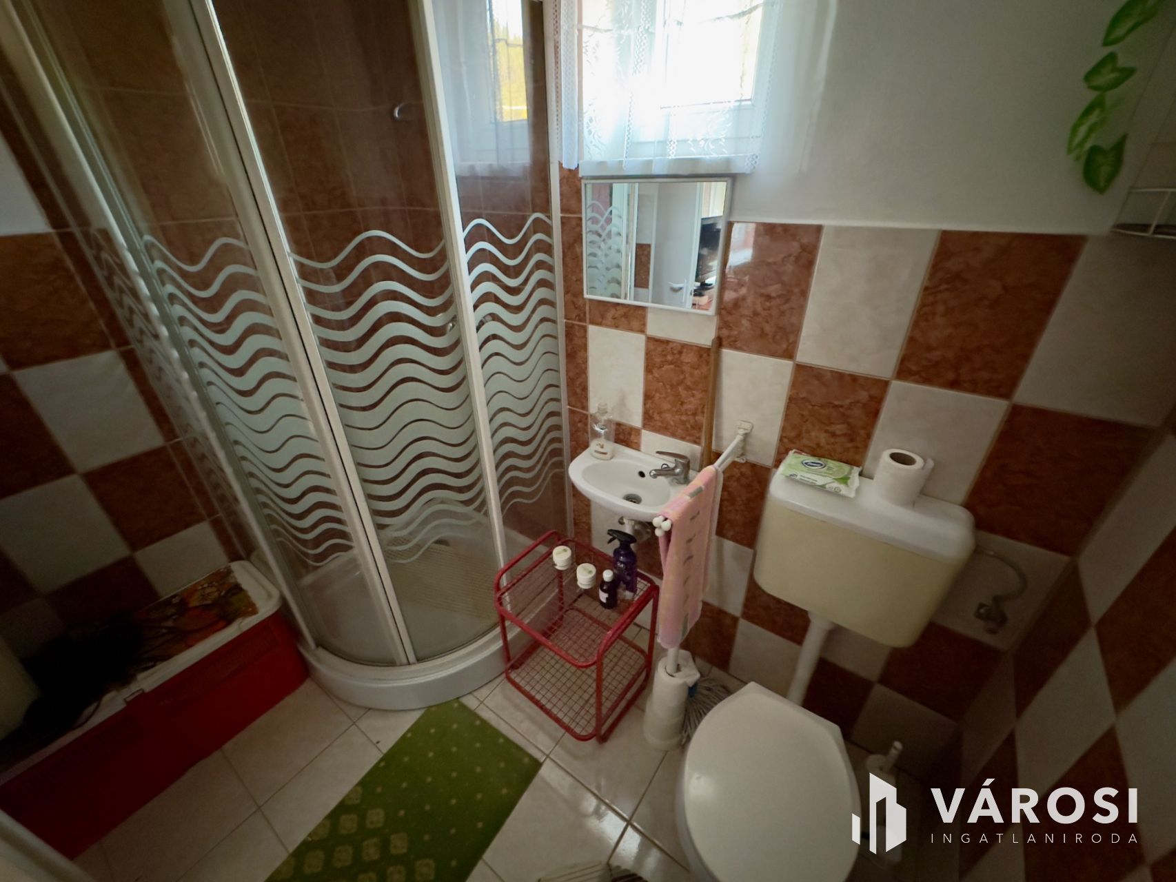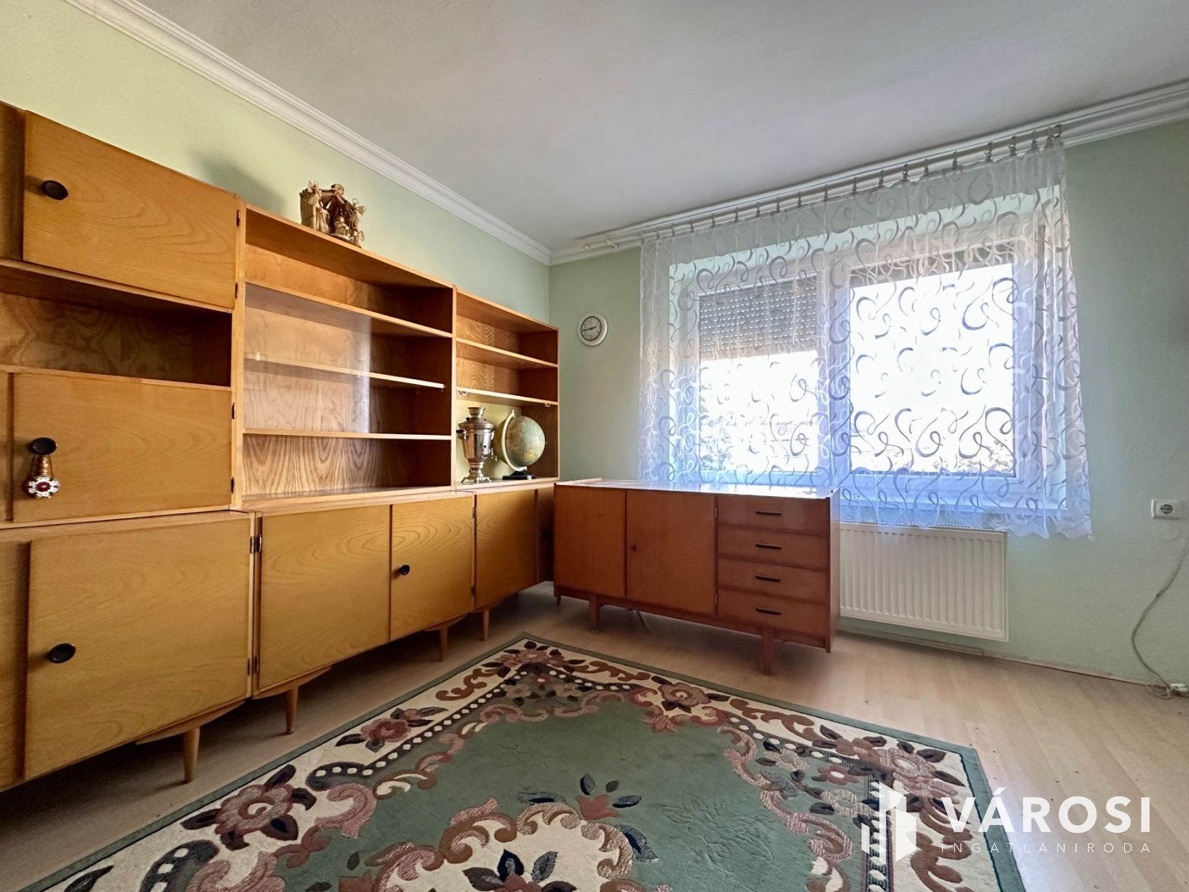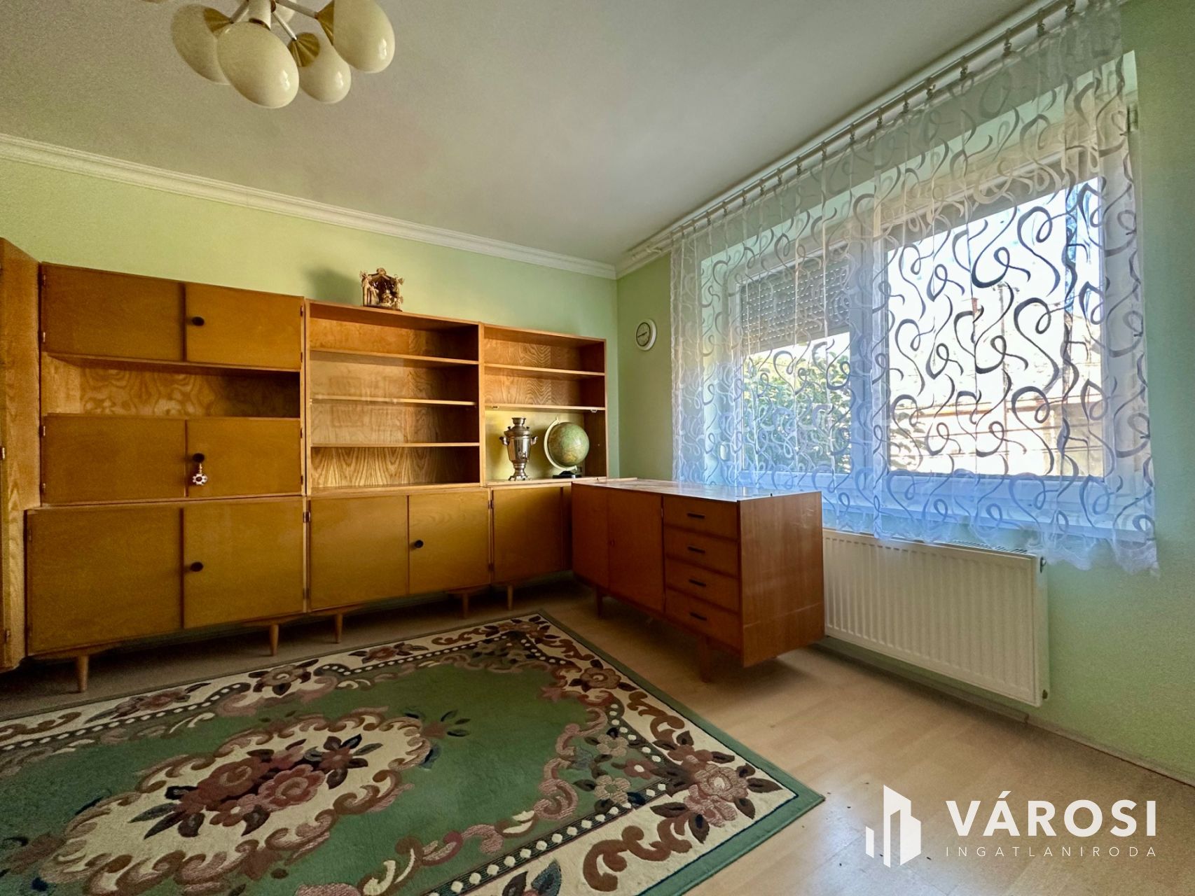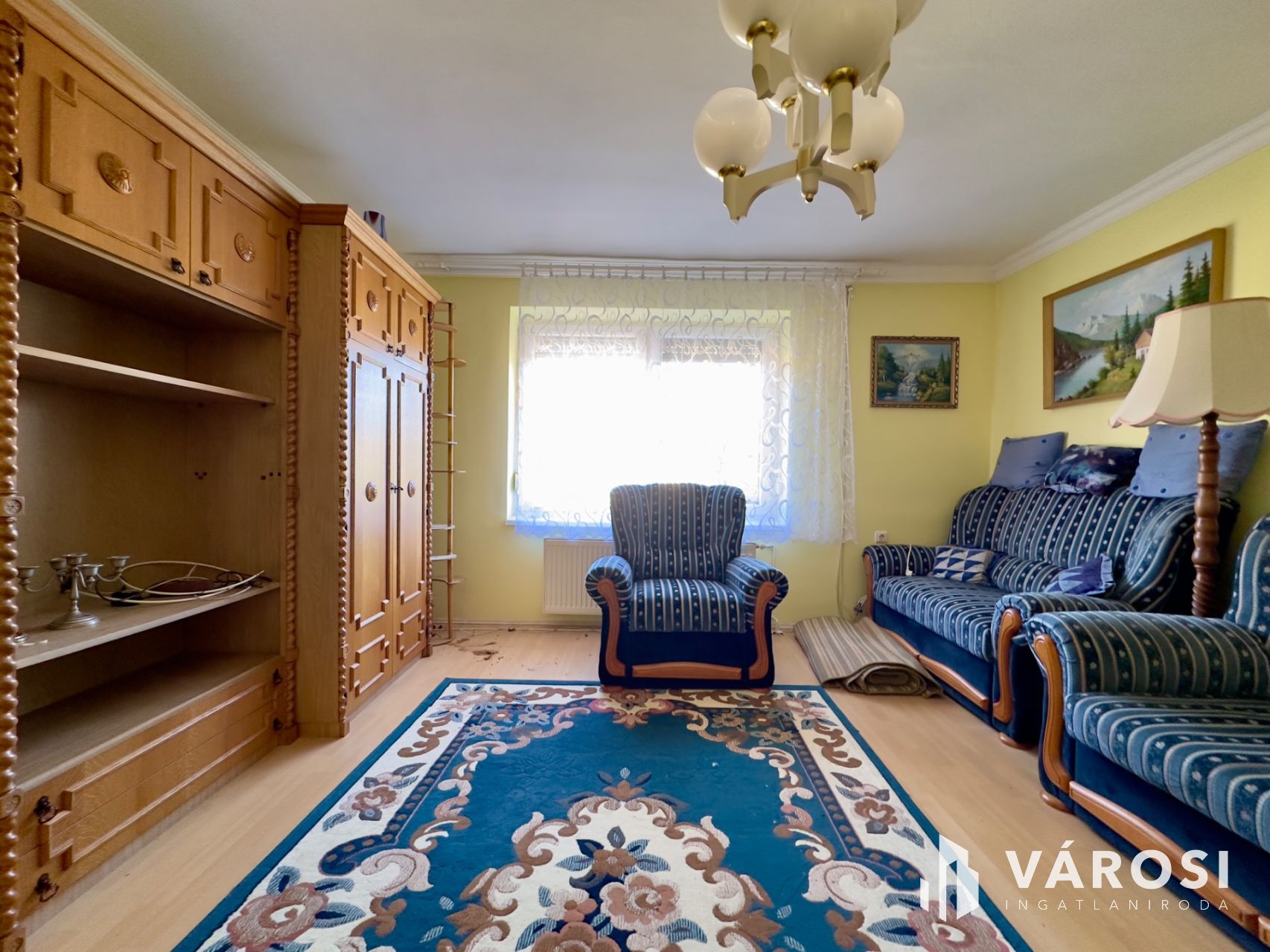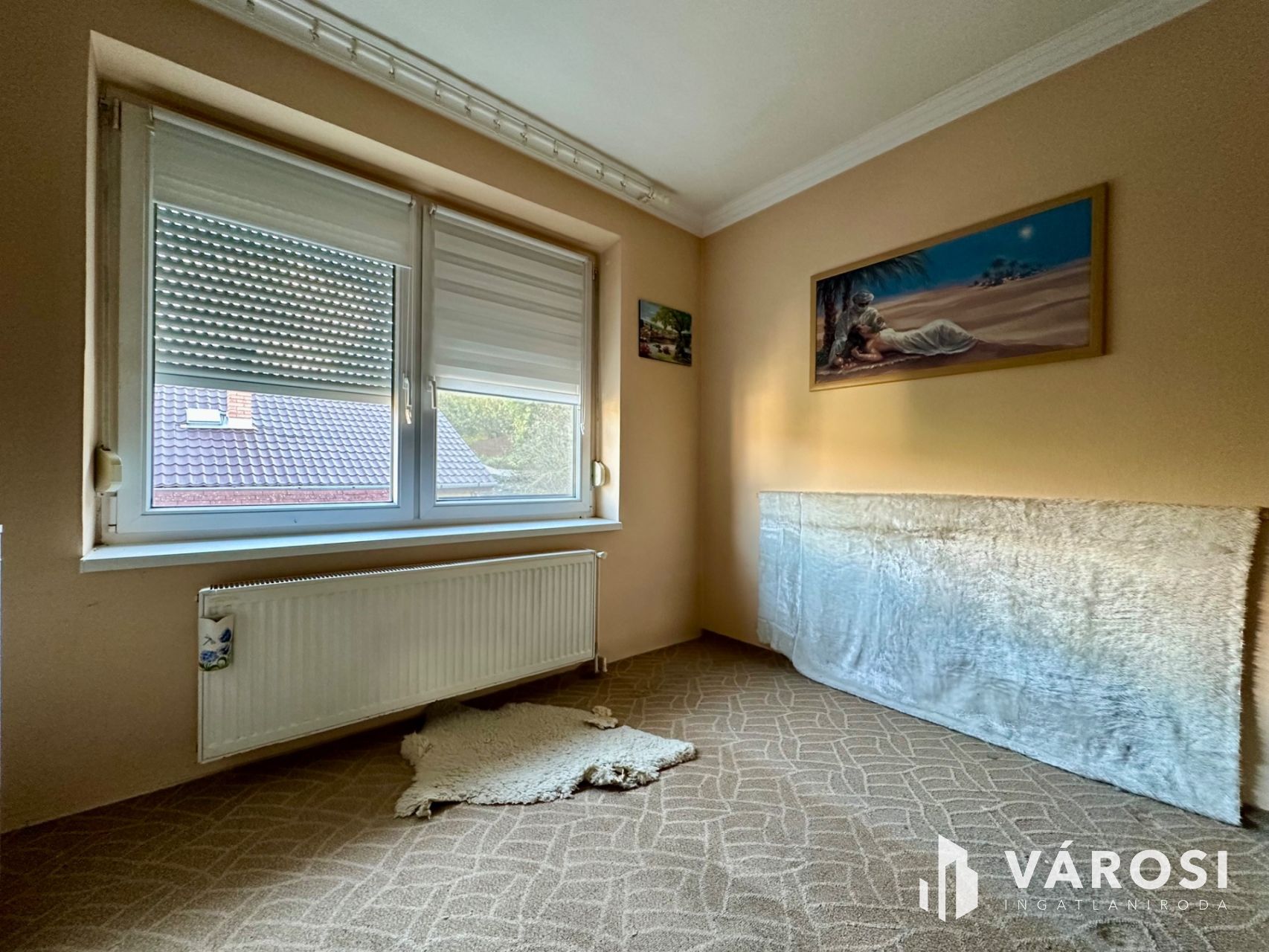 Helyiségei: az alsó szinten konyha, étkező, kamra, külön nyíló W.C., közlekedő, kazánház, garázs (elektromos kapuval), a felső szinten 4 szoba, közlekedő, 2 fürdőszoba.