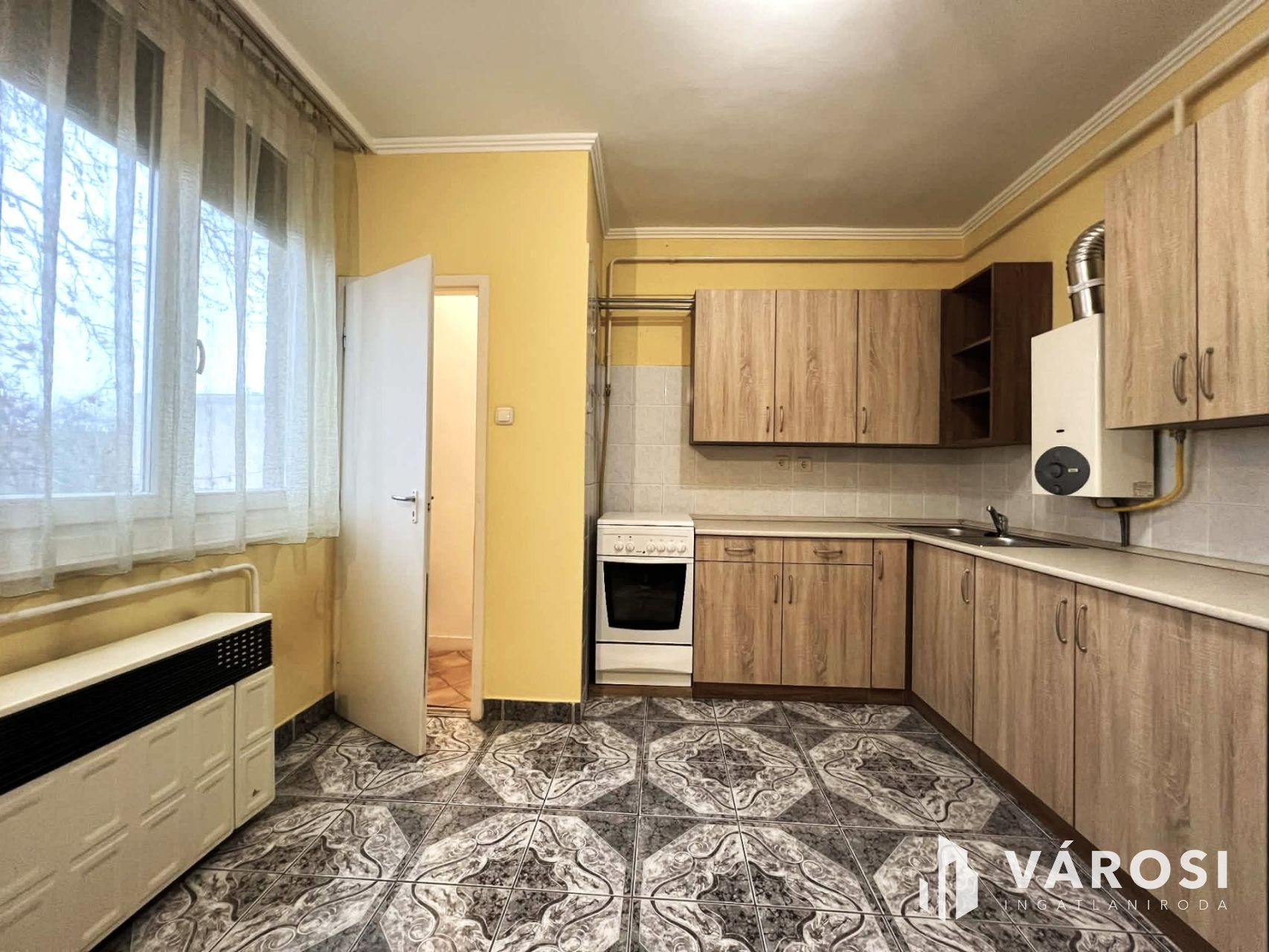 • Tágas konyha beépített bútorral + kamra