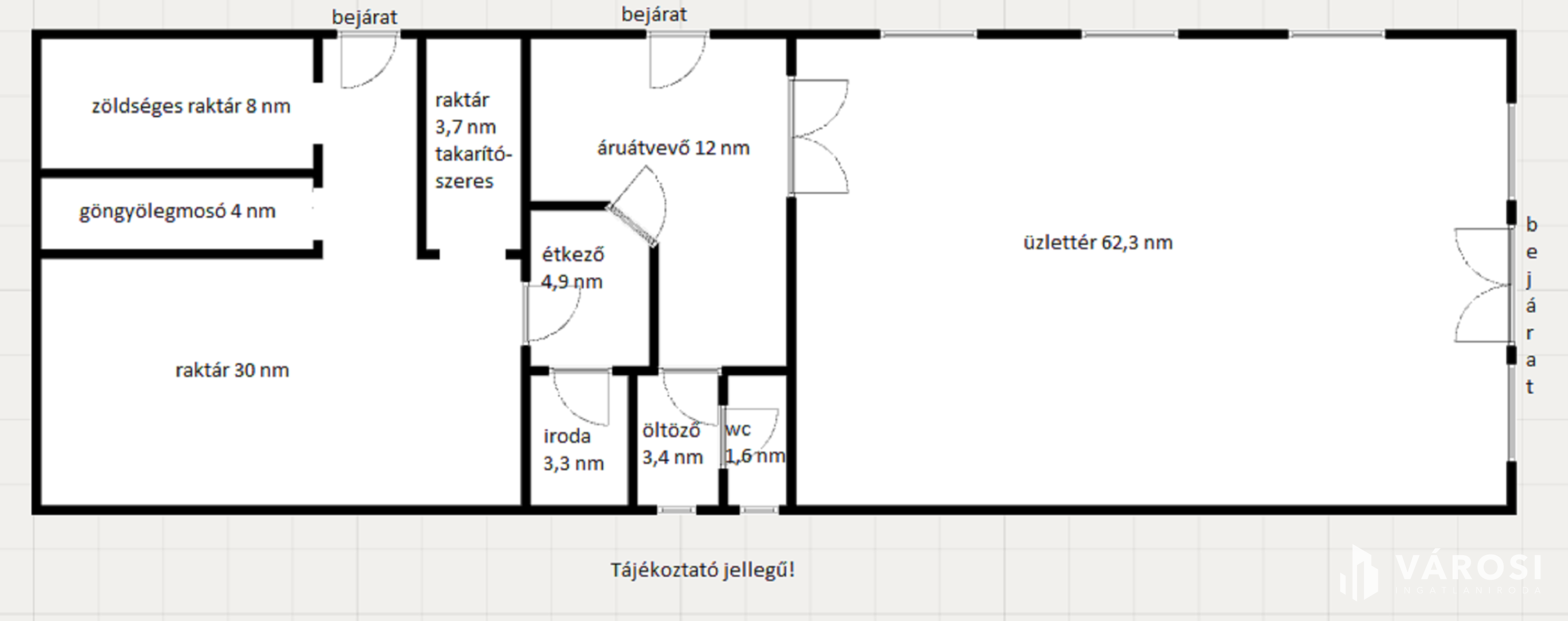 A kisebbik üzlet üzlettérből közlekedőből és wc-ből áll.