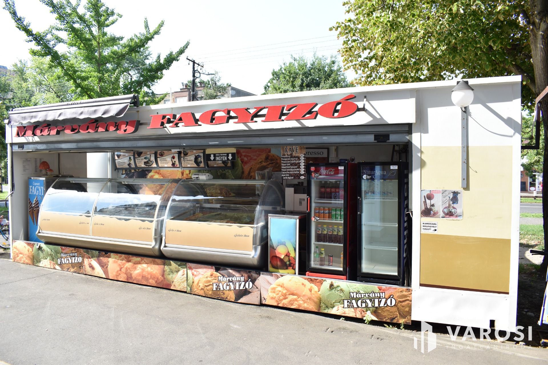 A vételár tartalmazza a fagylaltozóban lévő összes gépet, hűtőt, kerti garnitúrát és felszerelést.