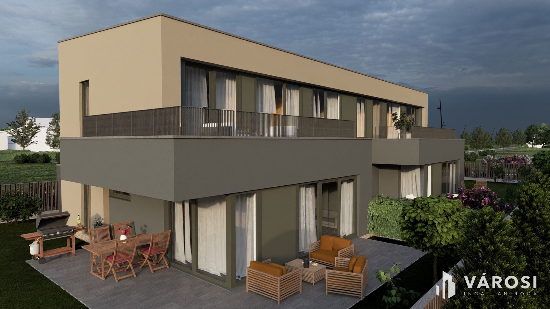 Csend, zöld környezet és modern kényelem – ezt kínálja ez a 134 m²-es, kétszintes, új építésű ikerház, melyhez 373 m²-es saját telekrész, 26 m²-es földszinti terasz és 18,64 m²-es emeleti tetőterasz tartozik.