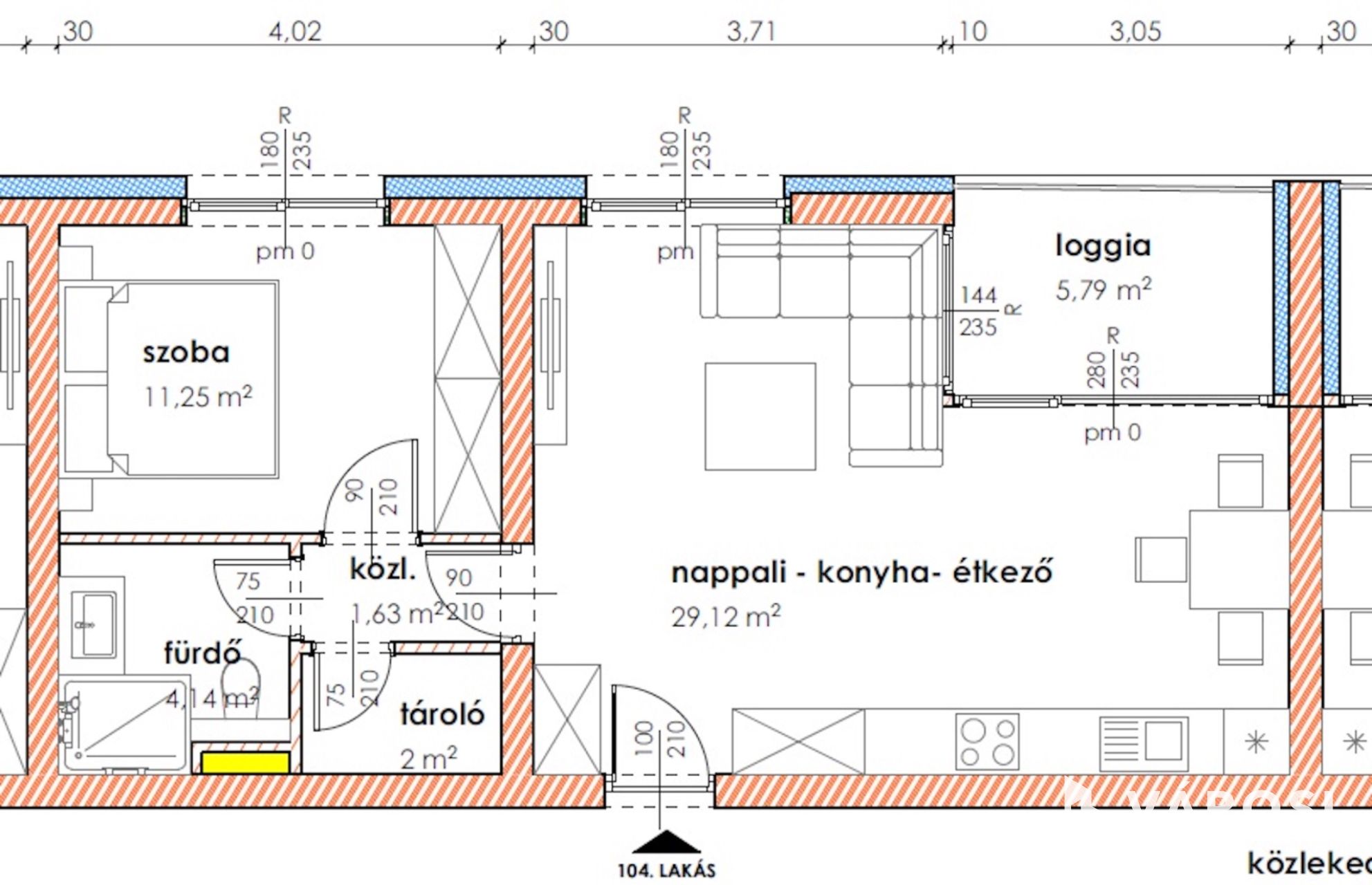 A 1 db amerikai konyhás nappalival, 1db hálószobával, 1 db fürdőszobával, közlekedővel, loggiával rendelkezik.