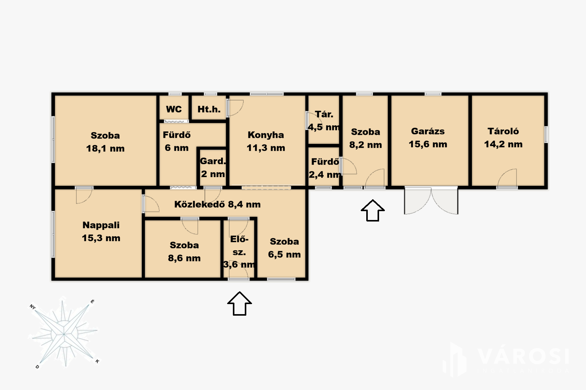 A ház két különálló lakóegységből áll. Az első egységben nappali, konyha-étkező, 2 szoba, 1 félszoba, fürdő, gardrób és fürdőszoba kapott helyet 87 négyzetméteren. A második lakóegységben, ami kívülről közelíthető meg, egy vendégszoba és kis fürdő + WC készült a 11 négyzetméteren.A házhoz tartozik egy udvari fedett terasz is, ami ideális helye a kerti partiknak és pihenésnek.