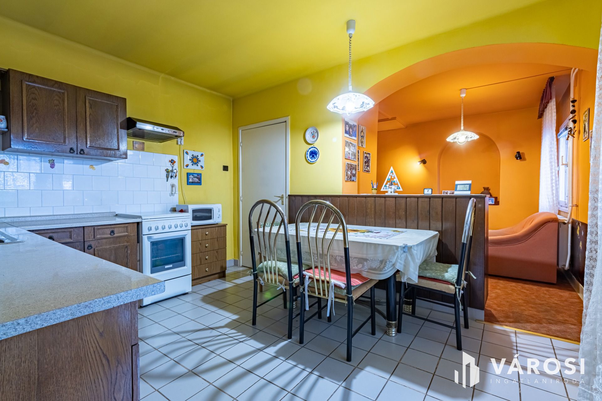 Szépen gondozott kerttel, a kertben garázzsal, az egyik szoba alatt pincével.