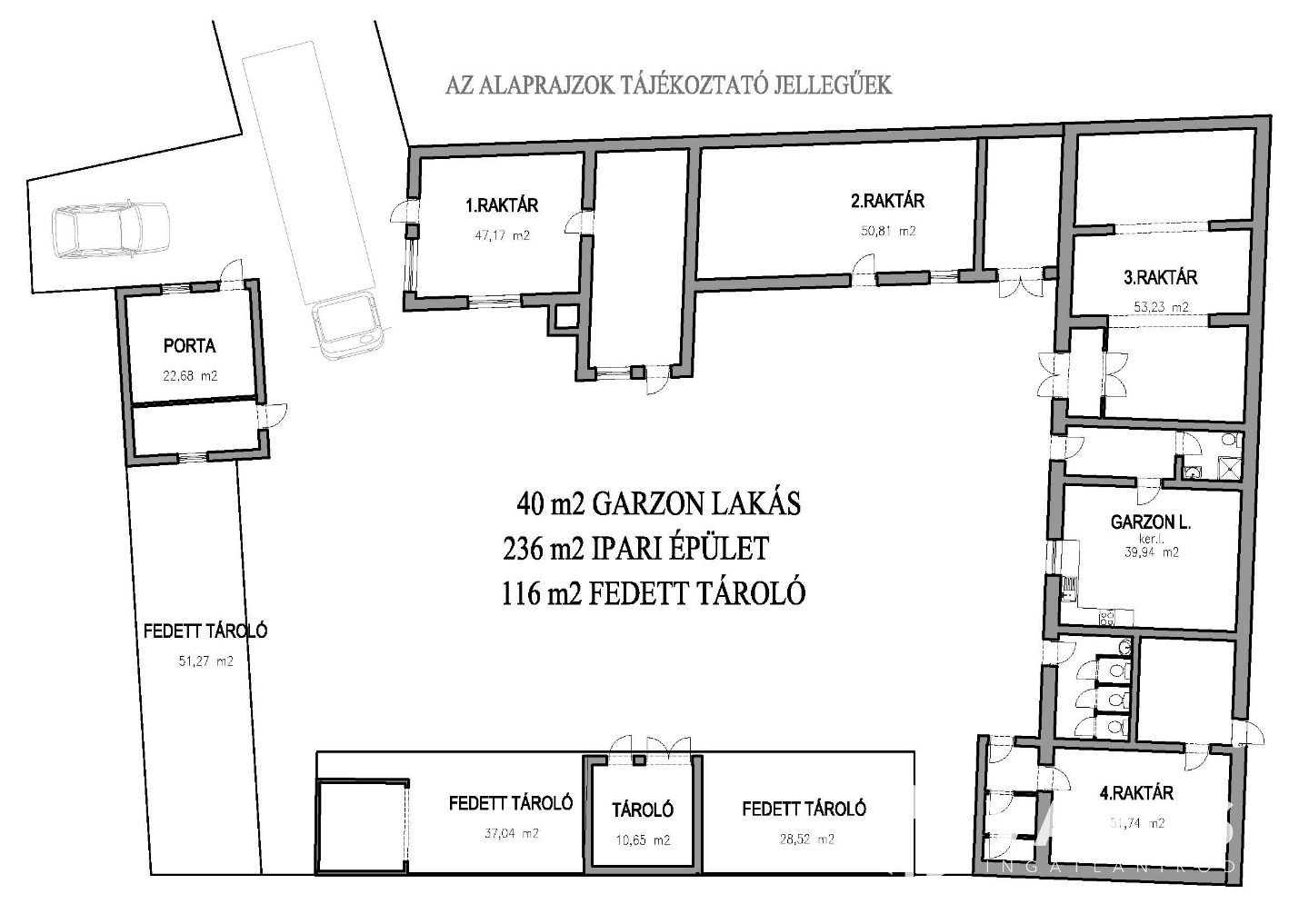 - fedett tárolók: 116 m2