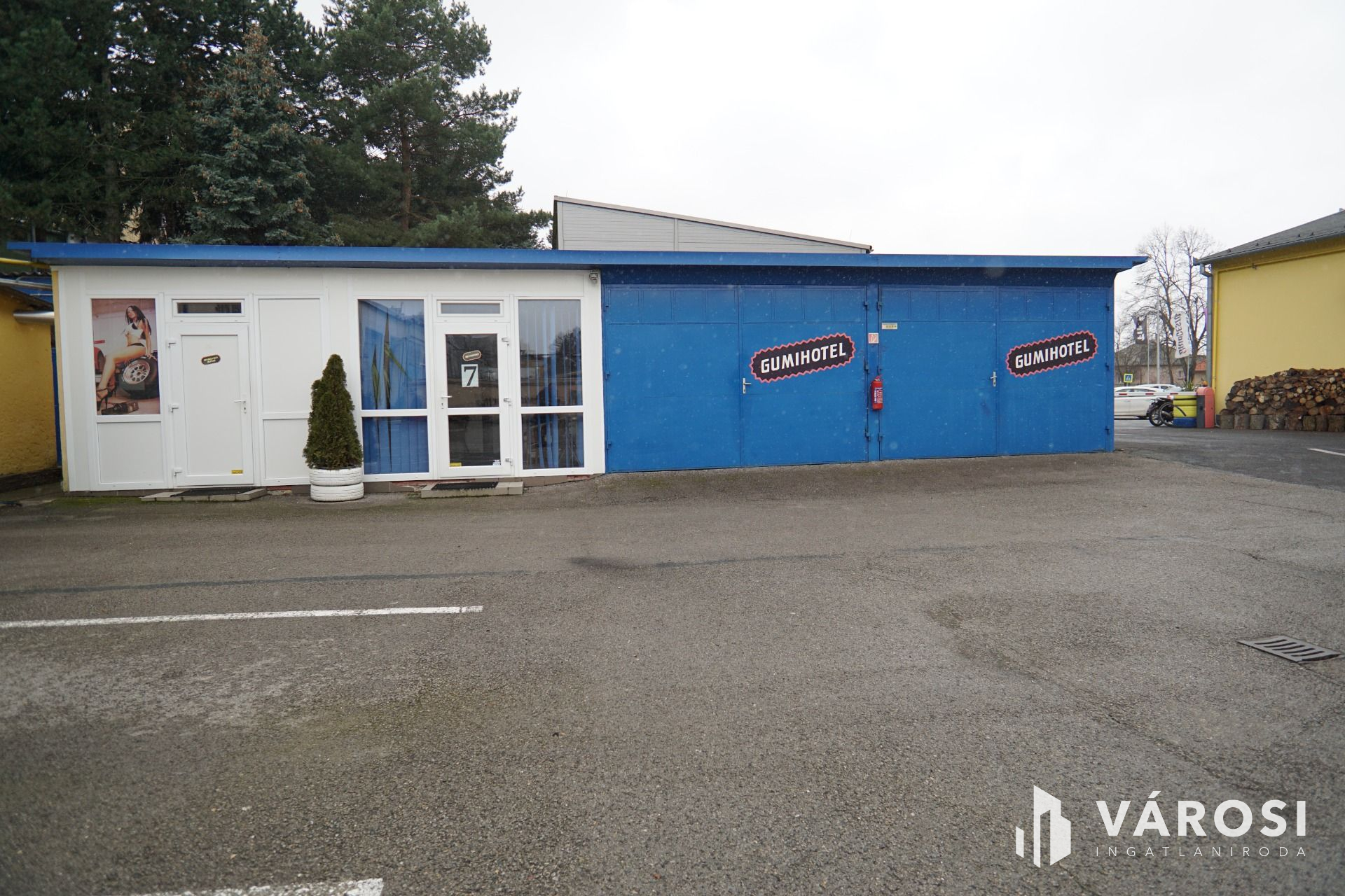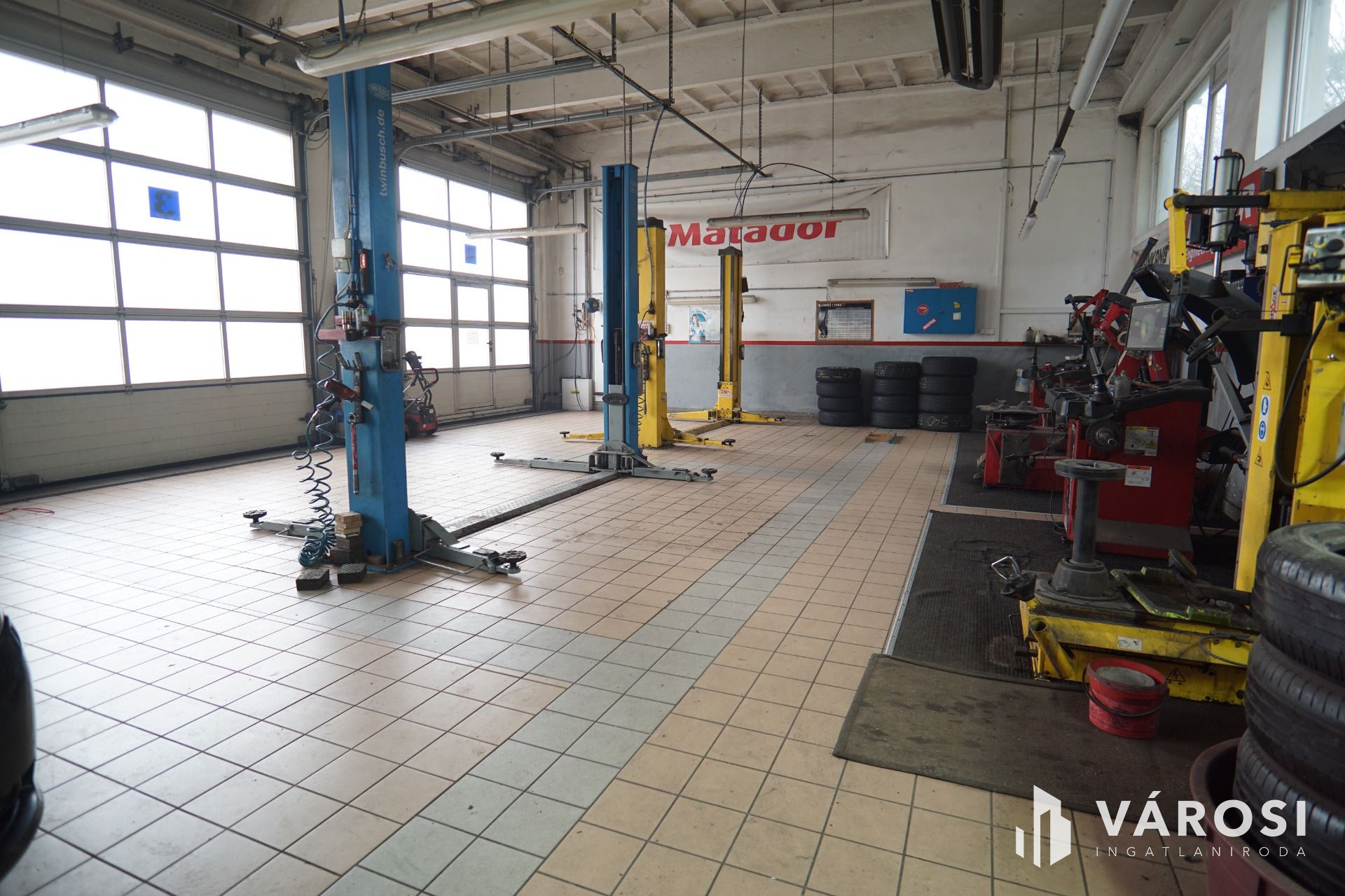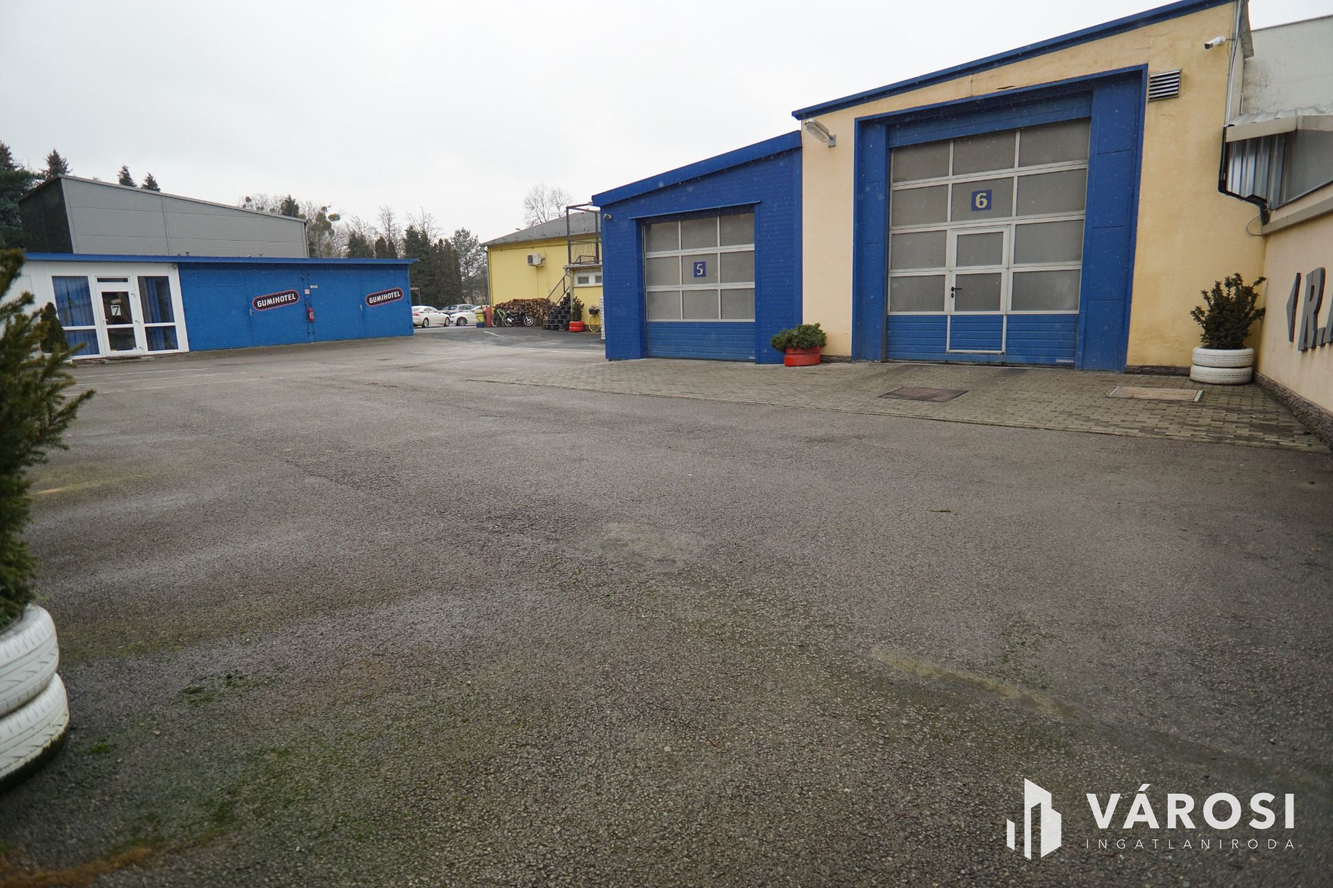 Szerviz: 4 külön beállóval rendelkező tégla épület, belső irodával, tárolóval, alkatrészmosóval, galériával valamint forgácsoló-javítórésszel. (Tulajdonos által használva).