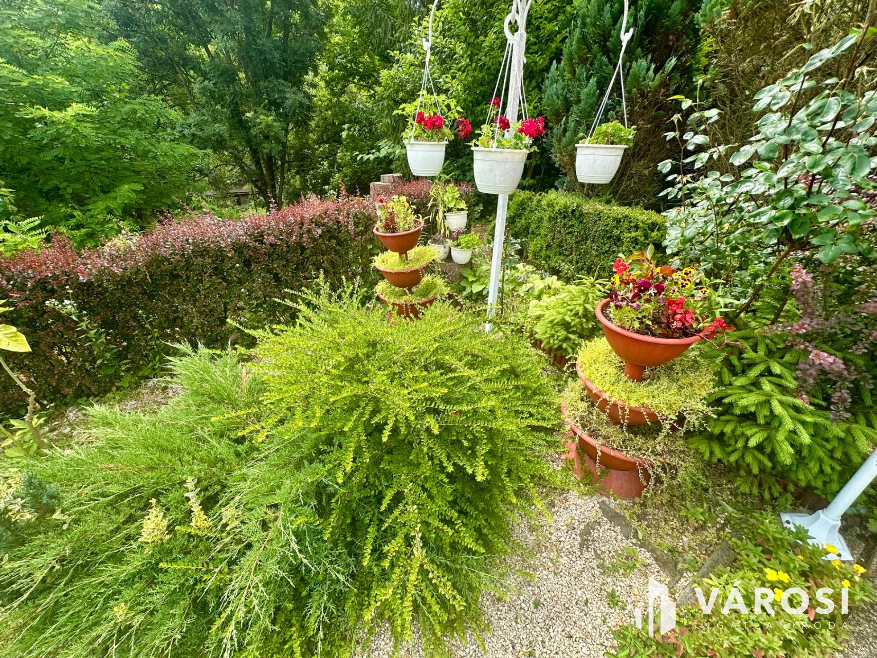 A kert rendezett, kellemes hangulatú, amely nyugodt, pihentető légkört teremt a kertben töltött időhöz. A garázs mellett, a ház utcafronti részén egy kocsibeálló is található, amely további két autó számára biztosít kényelmes parkolást.