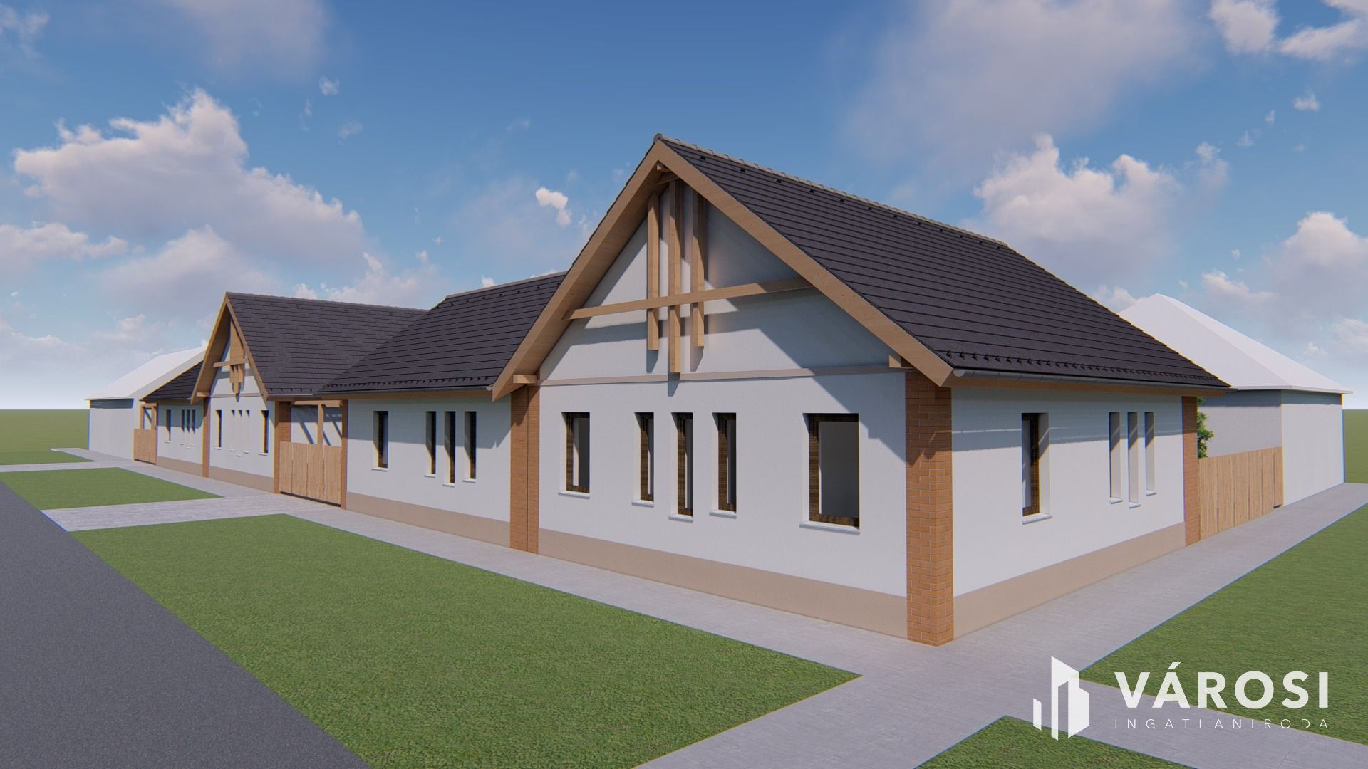- A lakásokat a szomszédos épülettel párhuzamosan gyeprács járda köti össze,