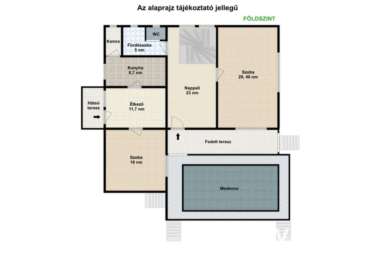 Két szint, tágas élettér és privát medence