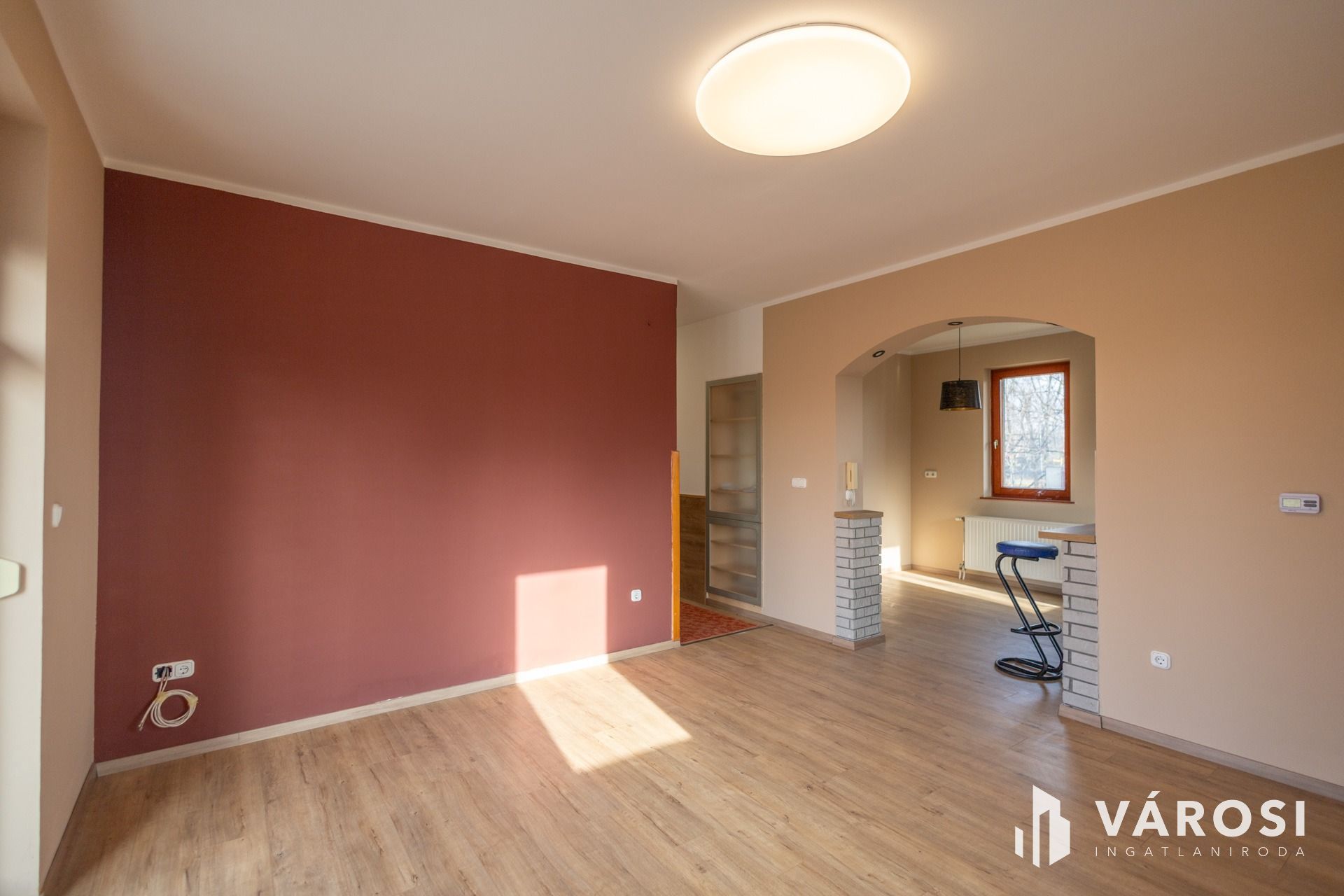 -Szobák és nappali laminált padlóval, egyéb helyiségek járólappal, mindenhol új padlóburkolat