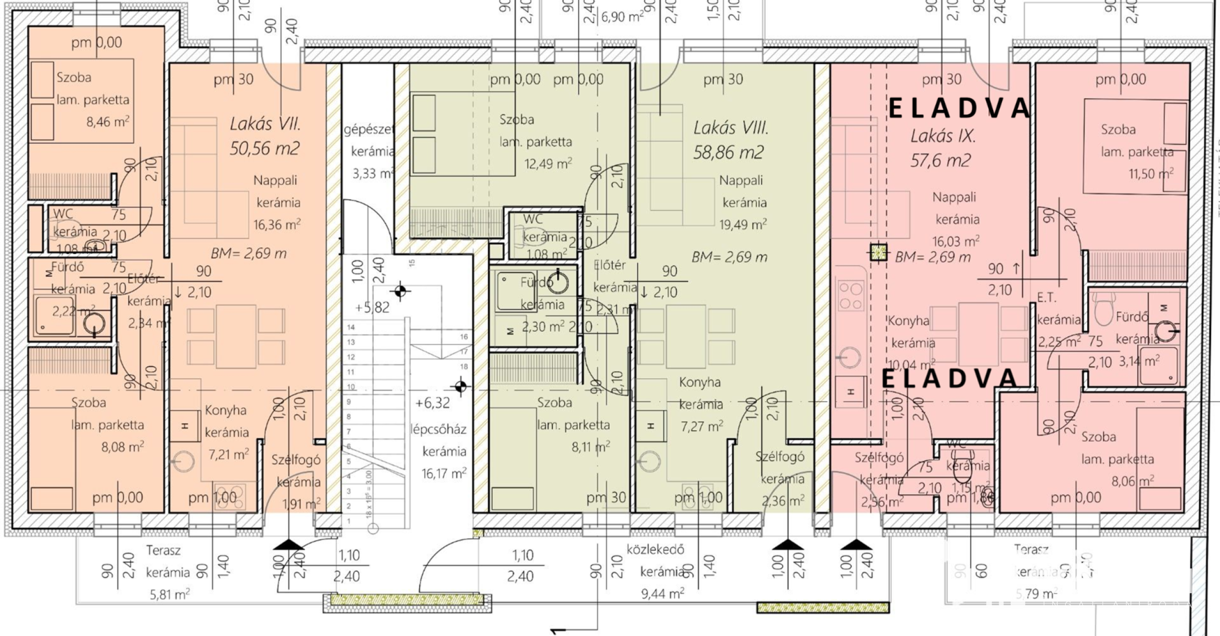 A lakások méretei, a legkisebb 45,47 m2, a legnagyobb 64,72 m2. 2026 januártól 5 % áremelés.