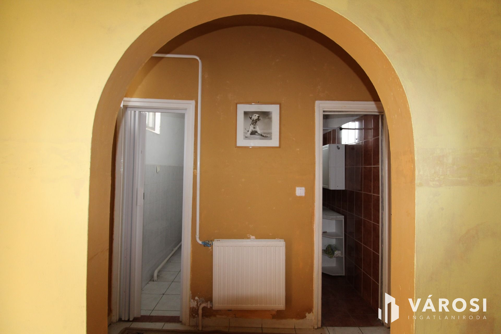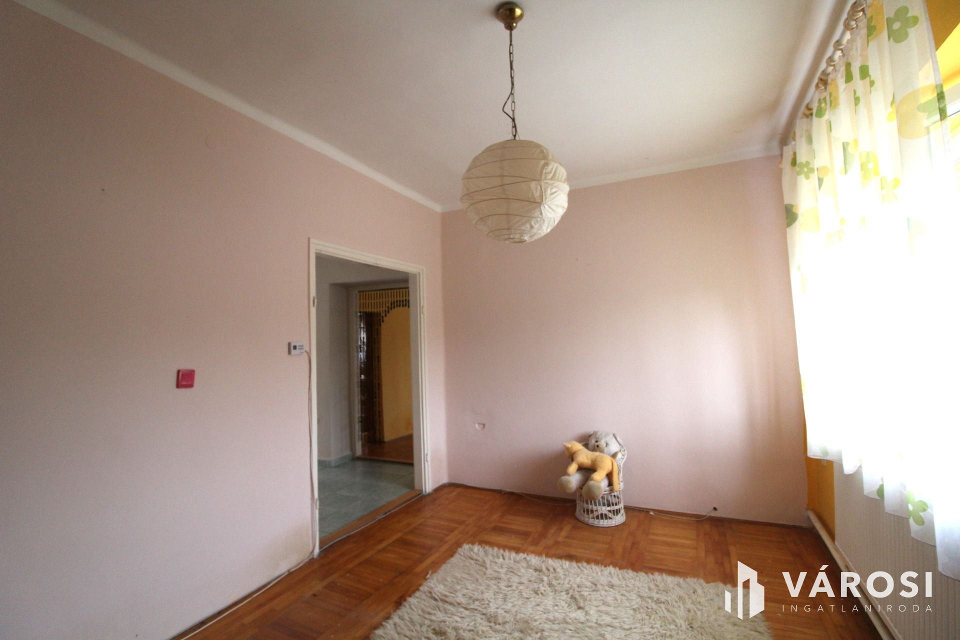 Az ingatlan jó állapotú, korszerű műanyag ablakokkal, hőszigetelt borovi fenyő bejárati ajtókkal. A szobák parkettásak, a közös helyiségek hidegburkolatot kaptak. A hátsó ajtón keresztül a polikarbonáttal fedet teraszra jutunk ahonnan a konyha nyílik.