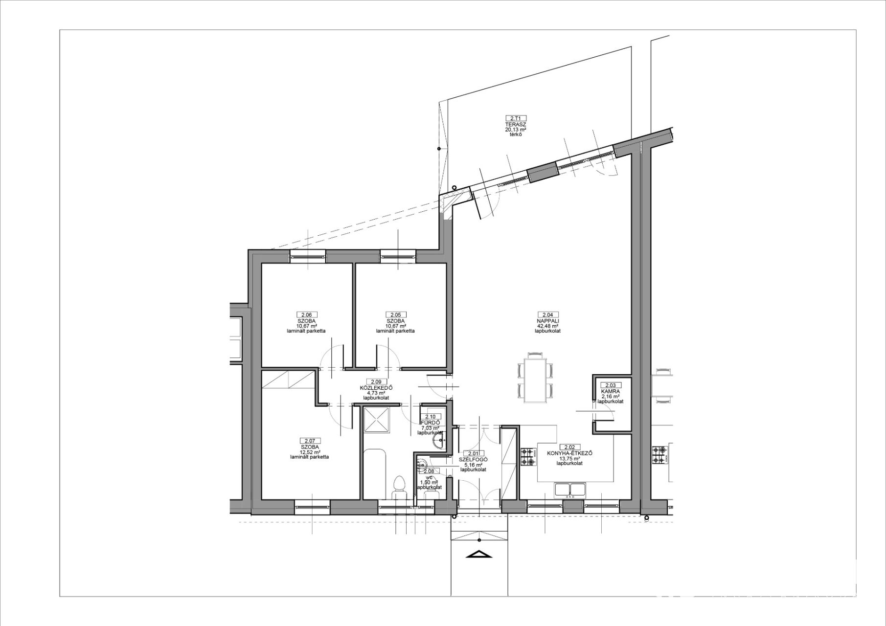 - Szobák: 12,52 m2, 10,67 m2, 10,67 m2