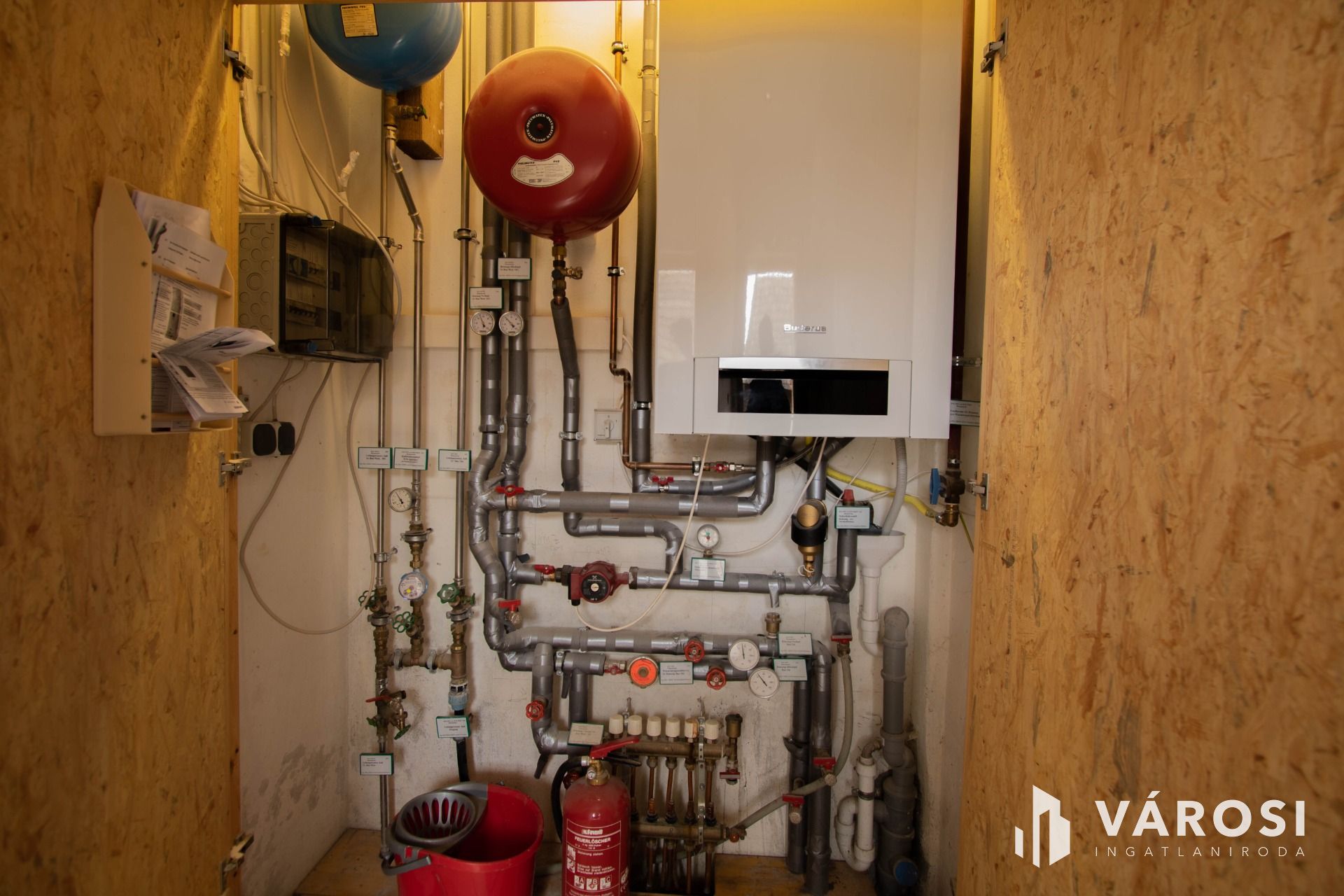 Az első ház, az összesen 130 nm nagy a kettő szintet egybe számolva. Az alsó szinten egy gyönyörű konyha+ étkező, egy szoba vagy épp nappali, egy fürdő és egy külön WC kapott helyet, ehhez az épülethez tartozik a gépház, amit a teraszról kilépve lehet egy másik ajtón megközelíteni. Ennek az épületnek az emeleti részén található egy nagy szoba/nappali és egy másik szoba is, ezekhez tartozik egy külön fürdőszoba+ WC is, a konyhából nyílik a terasz. Gépészete teljesen új, az egész ingatlan fel lett újítva. Az ingatlan állapota nagyon szép, igaz az emeleti részen a konyha nem került beépítésre, de a burkolatok mindenhol rendben vannak. Az épület minden helyiségébe padlófűtés található!