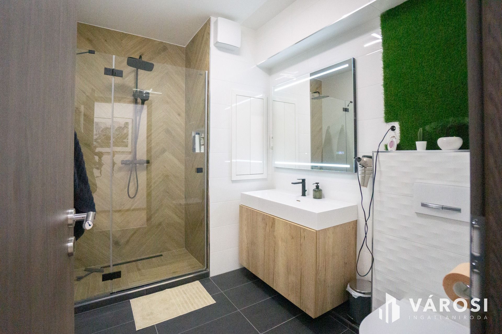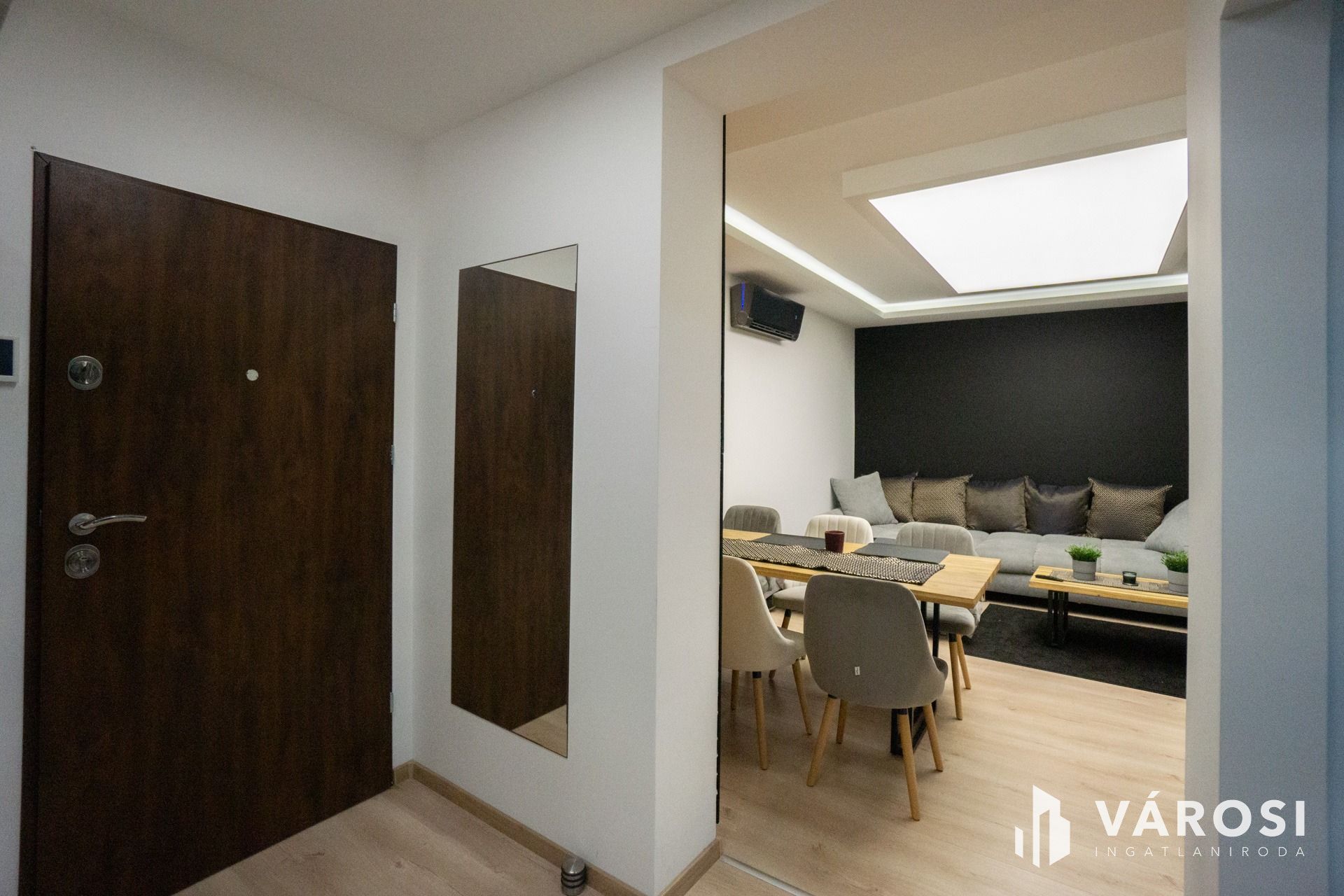 A lakásban felszerelésre került egy hűtő-fűtő klíma, ami biztosítja a mindig kellemes hőmérsékletet.