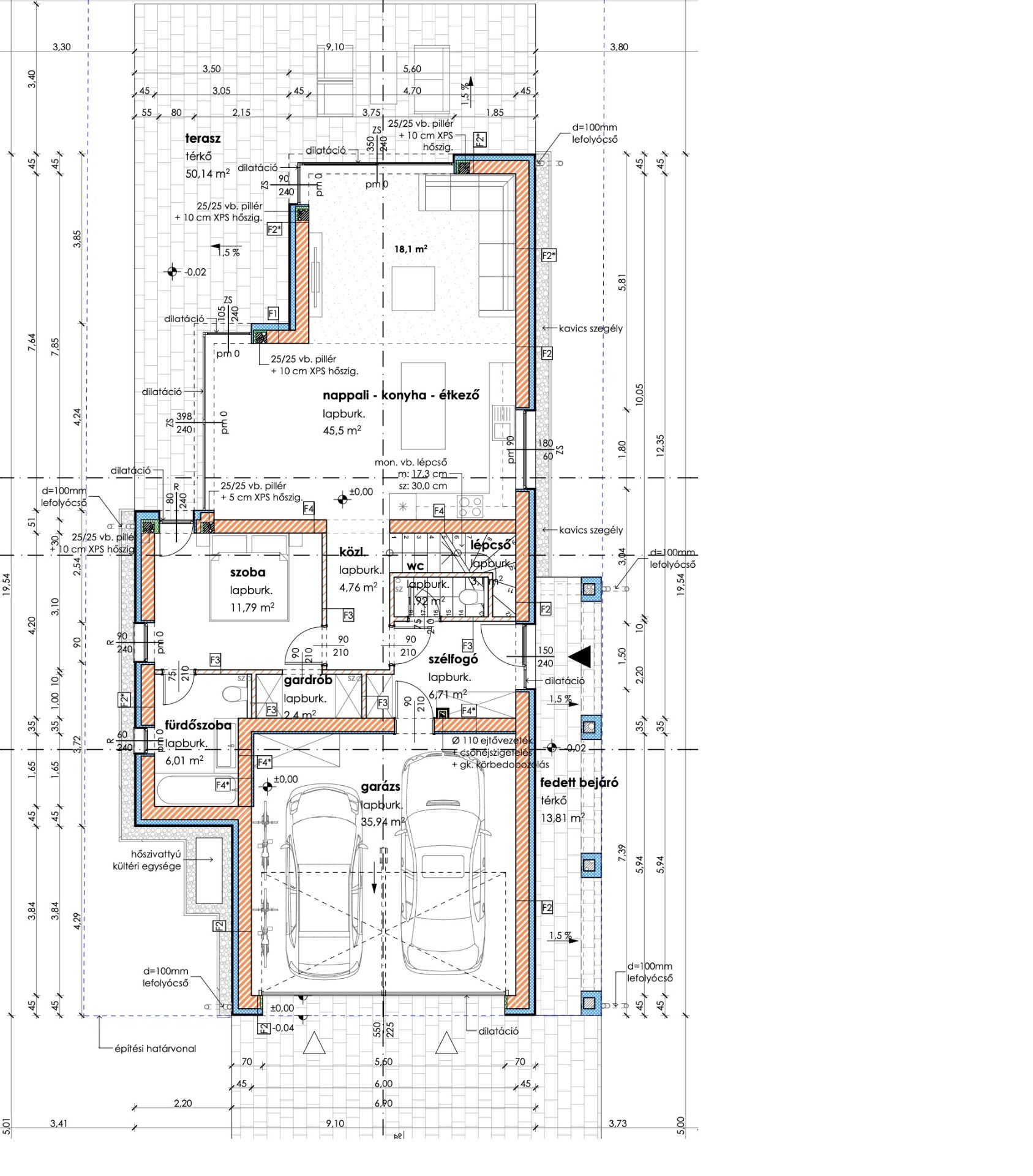 - nettó alapterület: 168,5 m2 + 13,8 m2 fedett bejáró + 50 m2 terasz
