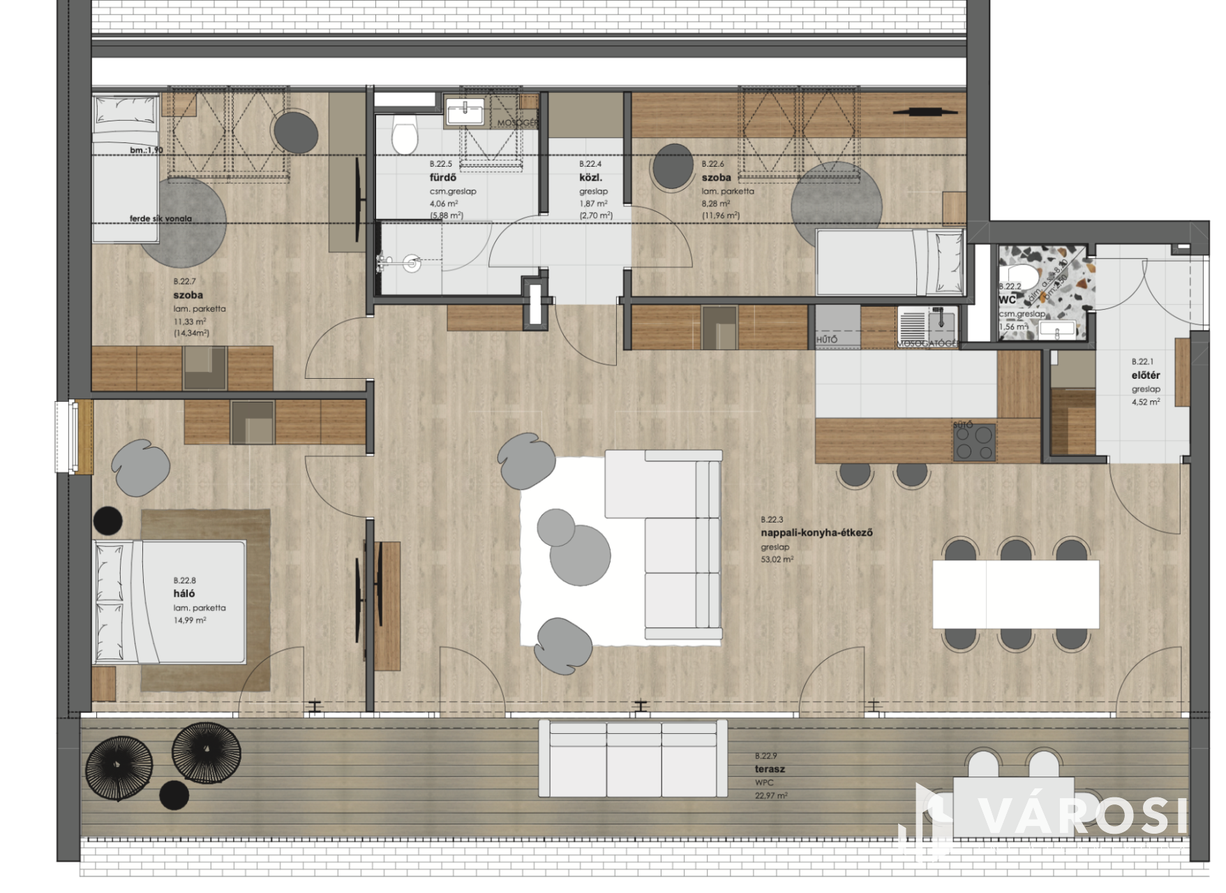 - Terasz: 22,97 m²