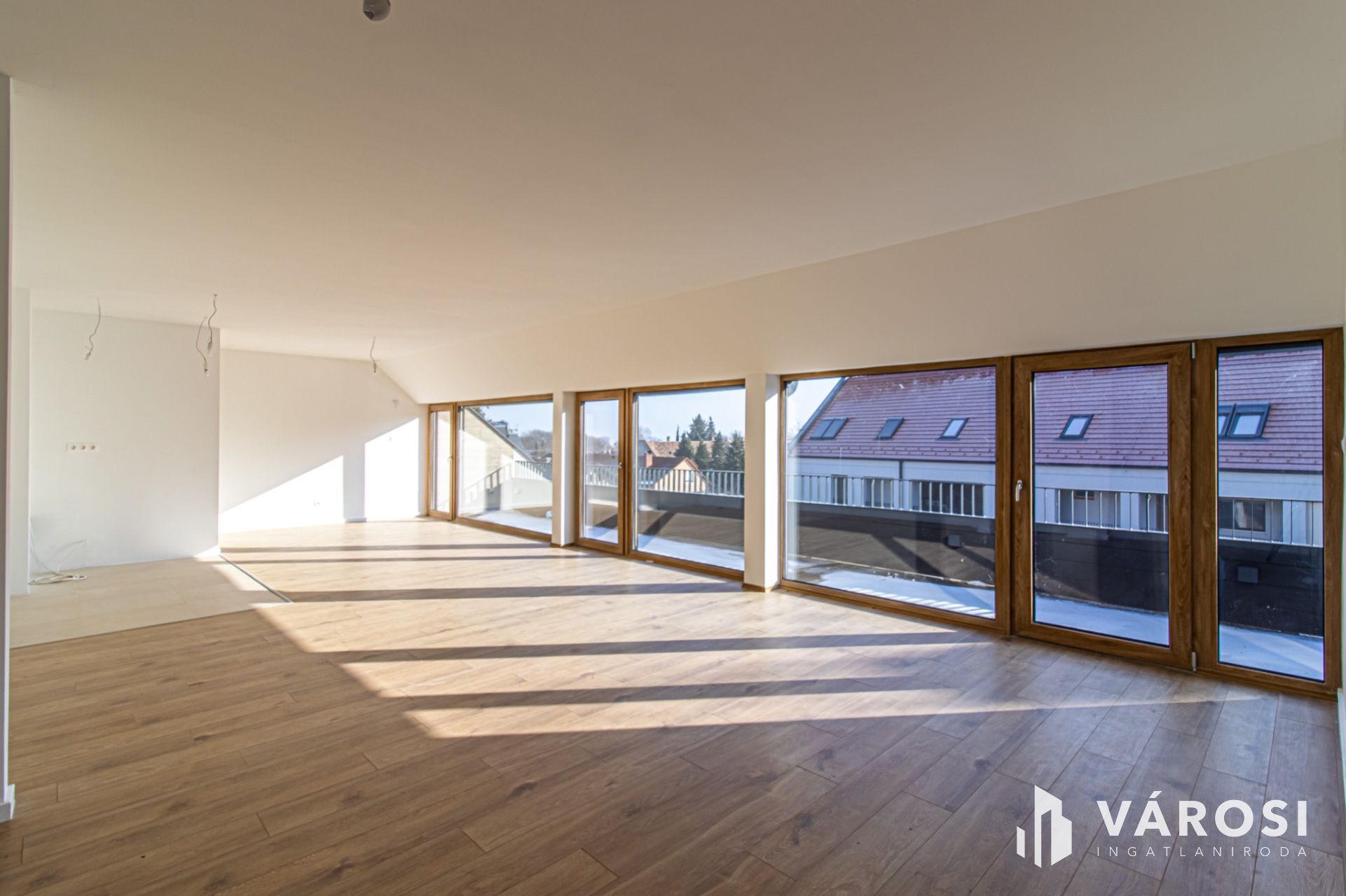 A 105,6 m²-es lakótérhez egy impozáns, közel 23 m²-es terasz kapcsolódik, amely az amerikai konyhás nappali és az egyik hálószoba előtt teljes szélességében végigfut. Délkeleti tájolásának köszönhetően egész nap világos, tágas terei és három külön nyíló hálószobája valódi életteret biztosítanak akár nagyobb család számára is.