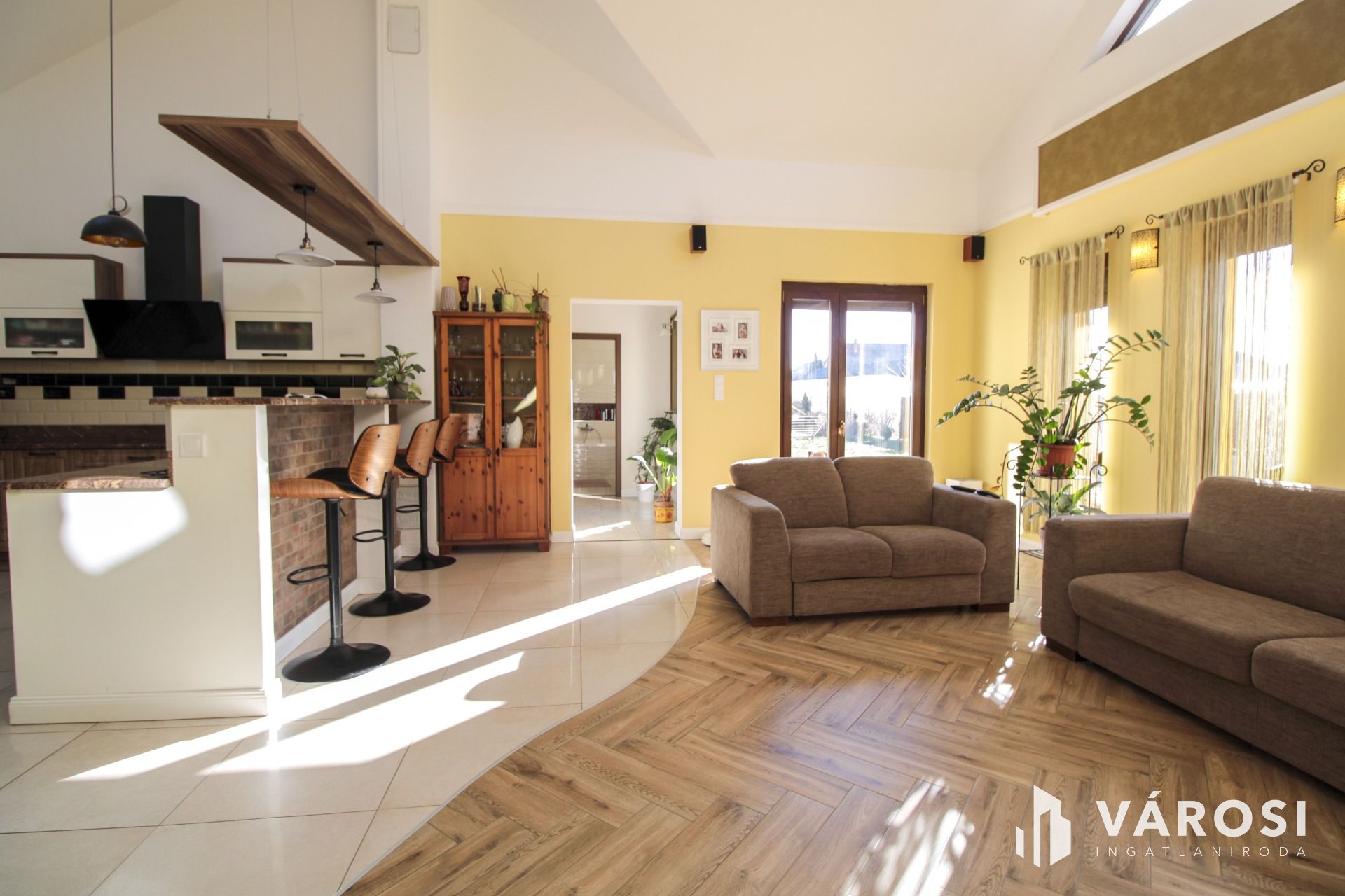 Az ingatlan elosztása és kialakítása a családi életre és a közösségi terek maximális kihasználására lett tervezve. Az amerikai konyhás nappali modern, letisztult stílusban készült, dekorvilágítással kiegészítve, amely otthonossá és barátságossá teszi a teret. 3 hálószoba, dupla fürdőszoba (egy kádas és egy zuhanyzós), háztartási helyiség, kamra és a szülői hálóban gardrób került kialakításra. A nappali a hátsó kertre nyíló, 45 m²-es teraszra vezet, amely tökéletes helyszínt biztosít a családi eseményeknek, ahol a kemence, a grillező, a szalonnasütő és a bográcsozó mind a kulináris élmények megélését szolgálják.