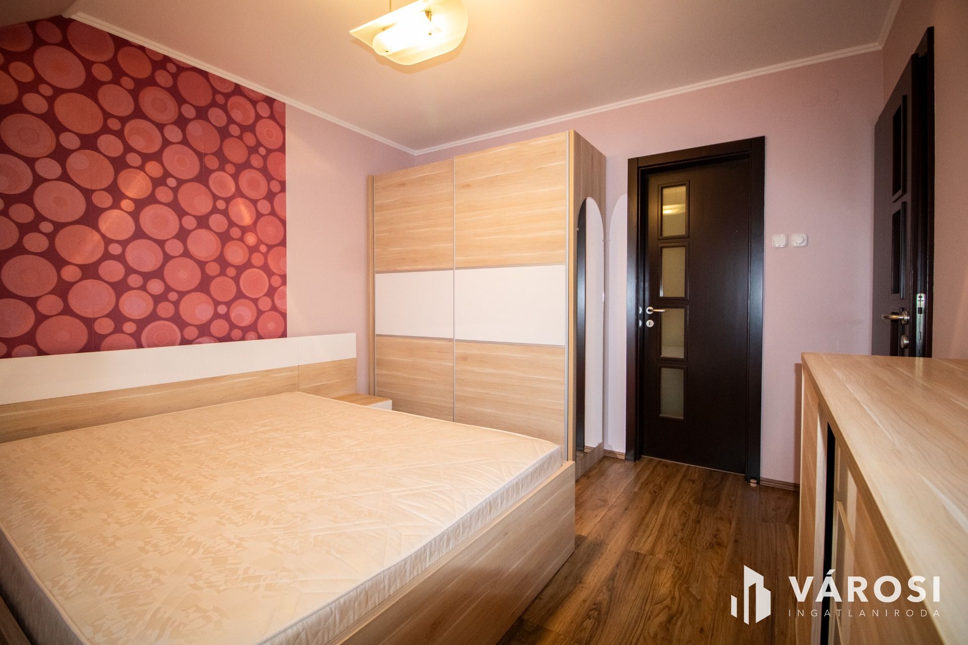 A lakás az első emeleten, a tetőtérben helyezkedik el, ahová kizárólag ehhez az ingatlanhoz tartozó, saját lépcsőházon keresztül juthatunk fel. A belső terek fiatalosak és rendkívül praktikus elrendezésűek: a közlekedőből nyílik a világos nappali és a modern konyha–étkező, amelyhez egy elegáns, kovácsoltvas korlátos erkély kapcsolódik. A két hálószoba jól szeparált, a külön WC és a mindkét irányból megközelíthető fürdőszoba pedig gondosan átgondolt, kényelmes megoldást nyújt a mindennapokban.