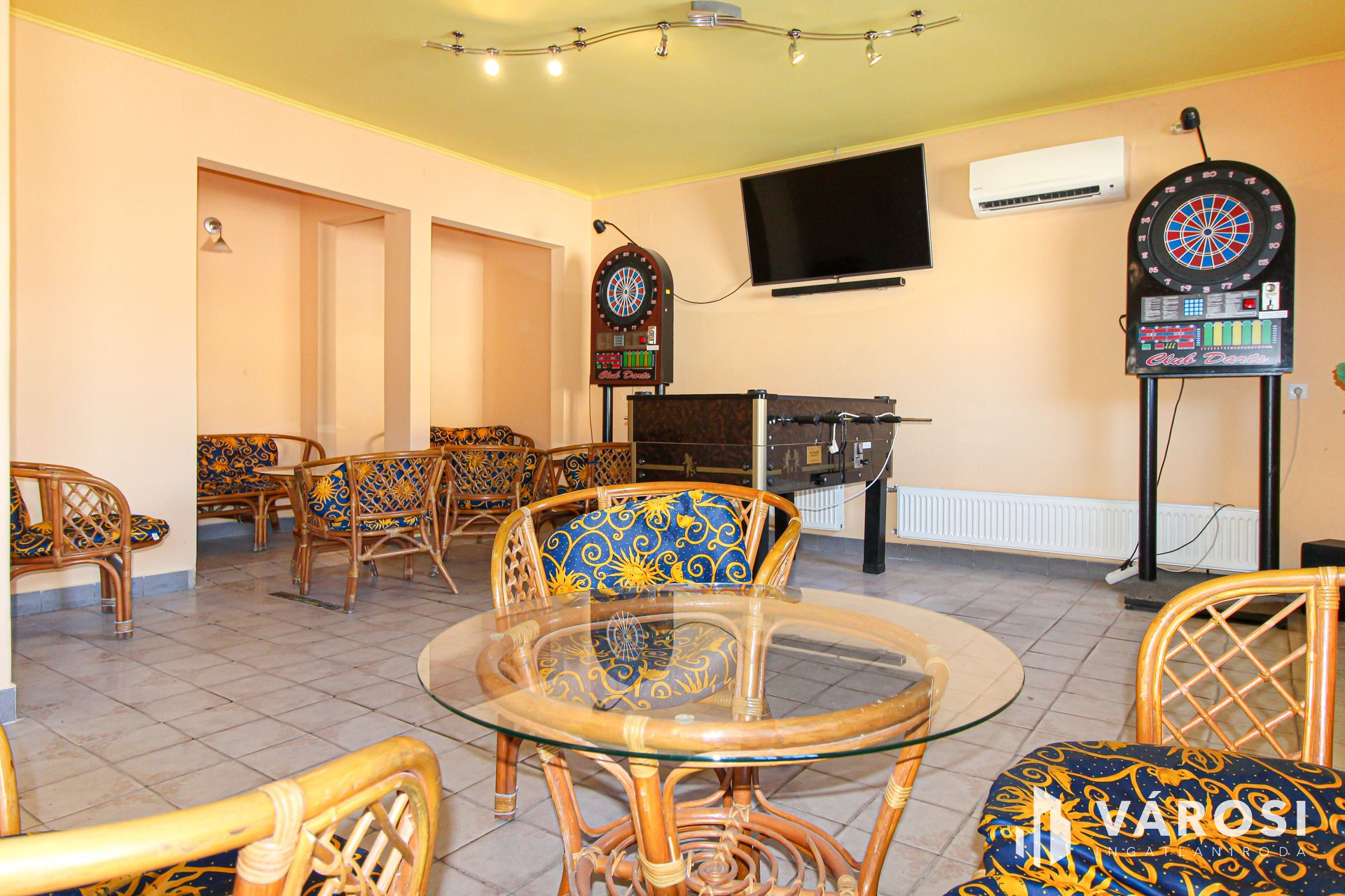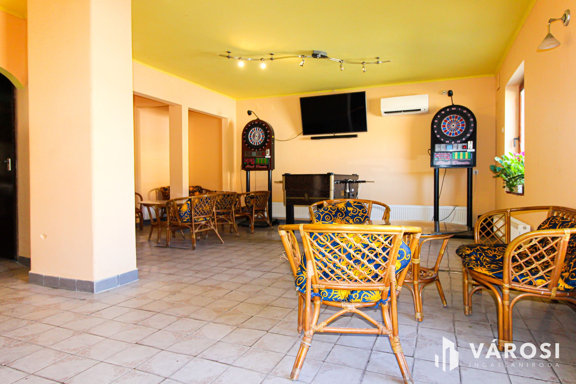 Vendégtér két részből áll ,az épület előtt terasz található .