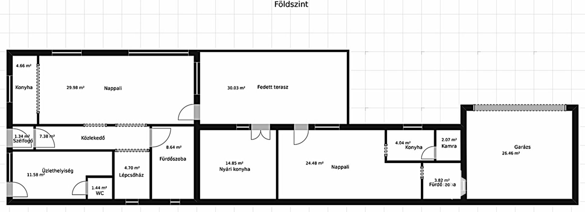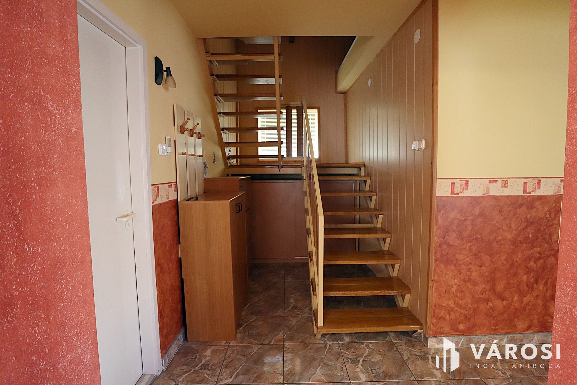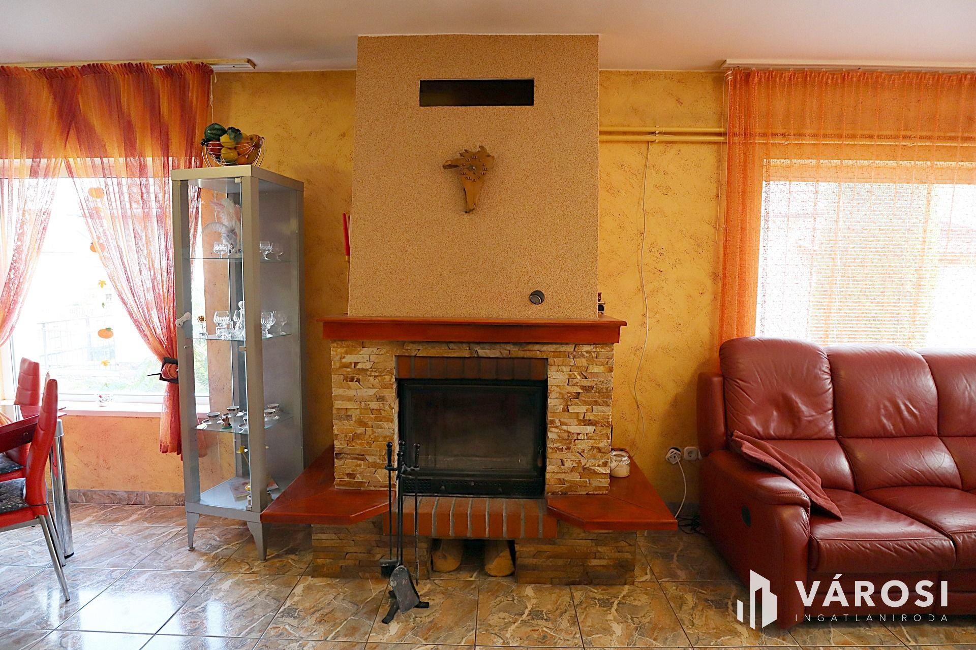 A földszintre az utcafrontról lehet bejutni, ahol nagy, világos konyha-nappali és fürdőszoba található. A hangulatot a hatalmas műanyag nyílászárók és egy igényesen kialakított vízteres kandalló fokozza, amely télen a melegről is képes gondoskodni. Ezen a szinten egy üzlethelyiség is lett kialakítva, külön bejárattal. A különlegessége az ingatlannak, a kert felé néző óriási terasz, amely lehetőséget ad a szabadban való időtöltésre. Itt egy nagy családi, baráti társaság is kényelmesen elfér, bármilyen rendezvényt tud otthonában szervezni az új tulajdonos.