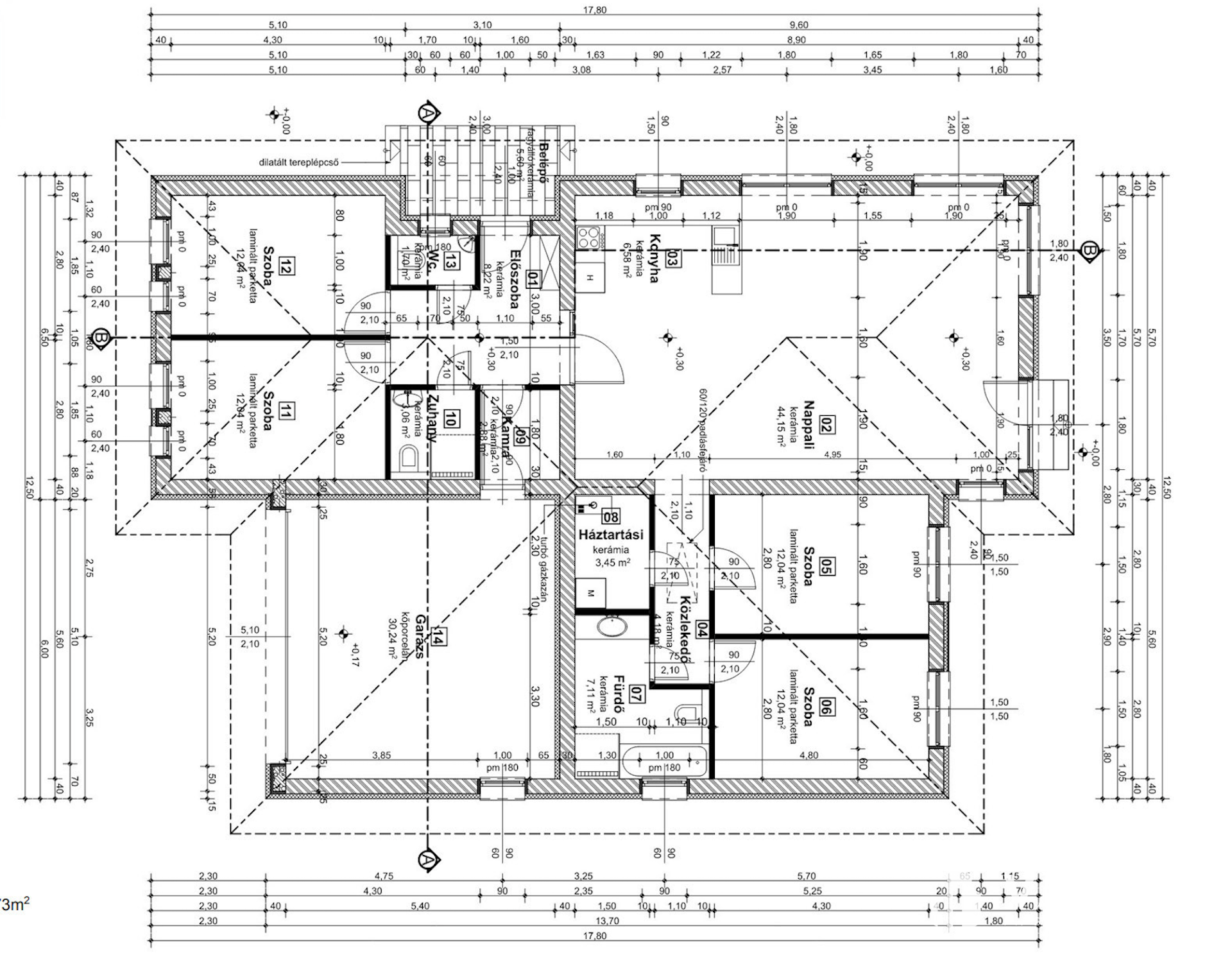 - szeglemezes, rácsos szerkezetű szerelt födém 30 cm hőszigeteléssel