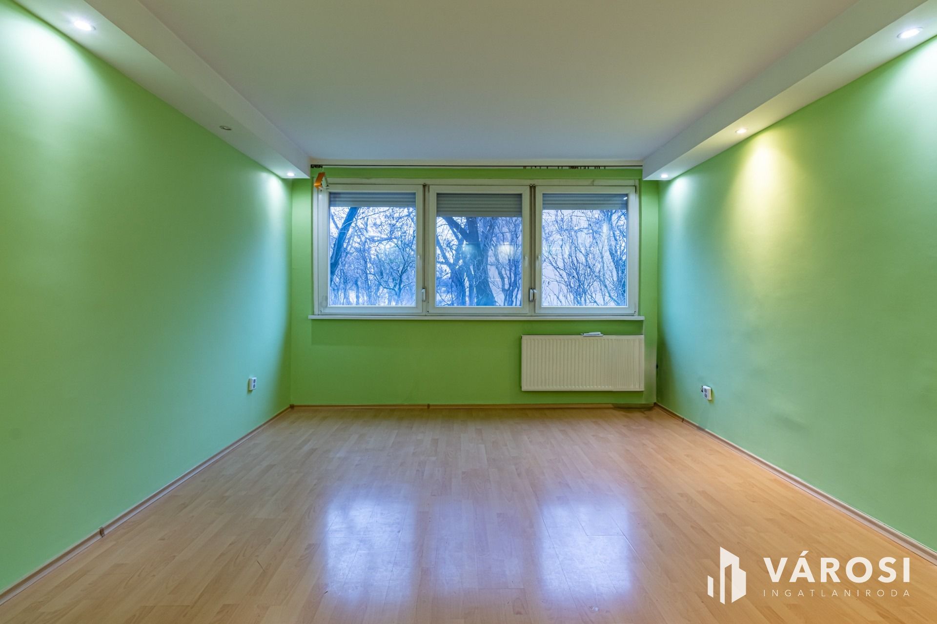 Eladó a Nagy Lajos király útján, egy átlagos állapotú, földszinti, három szobás panellakás.