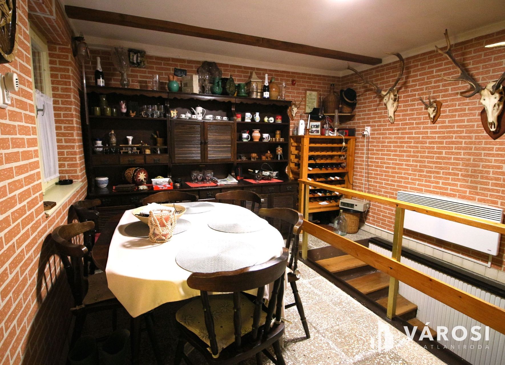 Az épület alatt egy szoba méretű pince helyiség található. Mivel ez az étkezőből egy fa lépcsőn közelíthető meg,így akár a lakótér bővítésére is lehetőséget ad.