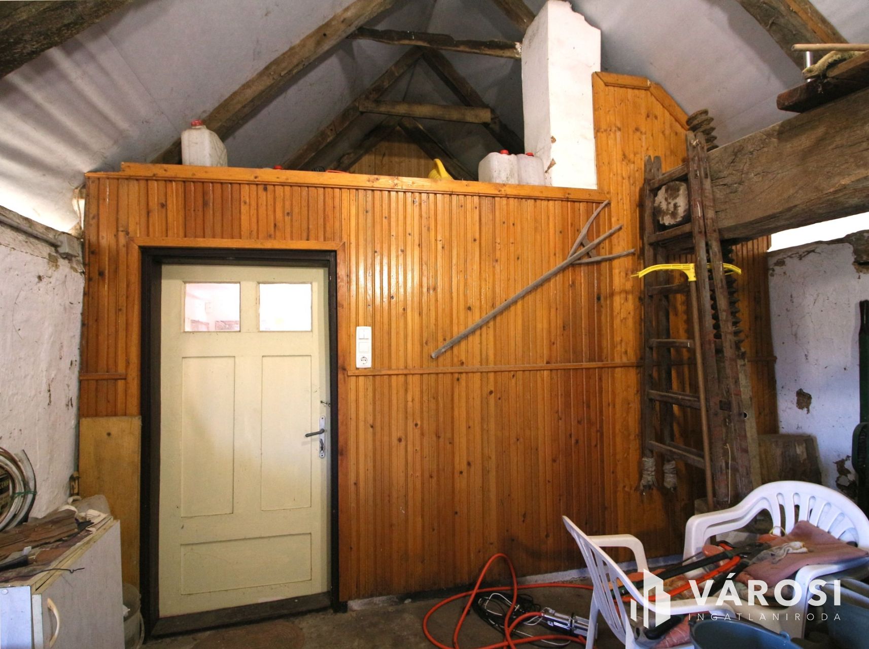 Fürdő nincs az épületben,de a kamra tökéletesen megfelel annak későbbi kialakítására.