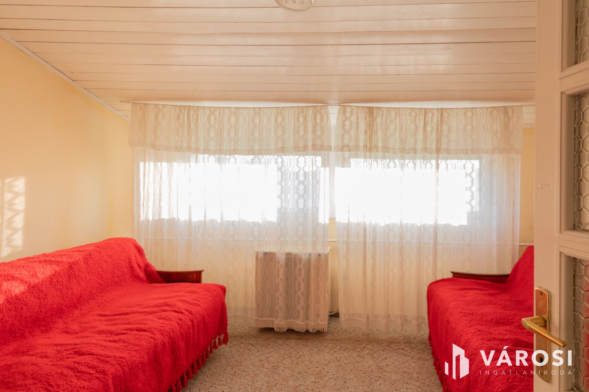 Ez a 150 m²-es lakótérrel rendelkező, átlagos állapotú ingatlan ideális választás mindazok számára, akik csendes környezetben szeretnének élni, ugyanakkor fontos számukra a jó közlekedés. A házban 4 tágas szoba, egy világos nappali, étkezős konyha, kamra valamint 2 fürdőszoba és két különálló mosdó is helyet kapott, így kényelmes otthont biztosít nagyobb családoknak is. Emellett a főépület hátsó szekciójában egy nagy alapterületű a kertből akár külön megközelíthető helyiség is található, mely alkalmas lakhatásra, de akár vállalkozás (körmös, fodrász, műhely stb) céljára is tökéletes.