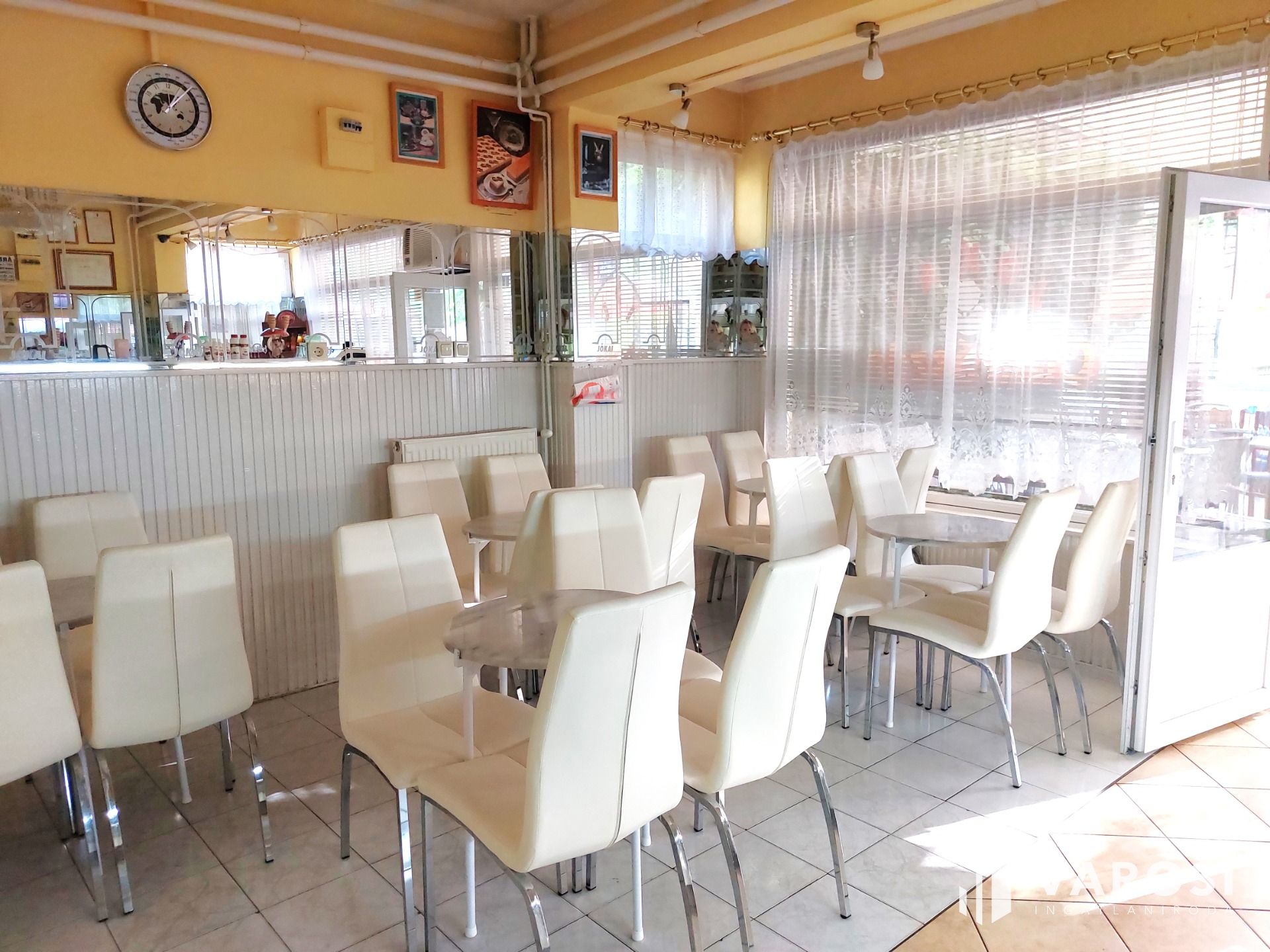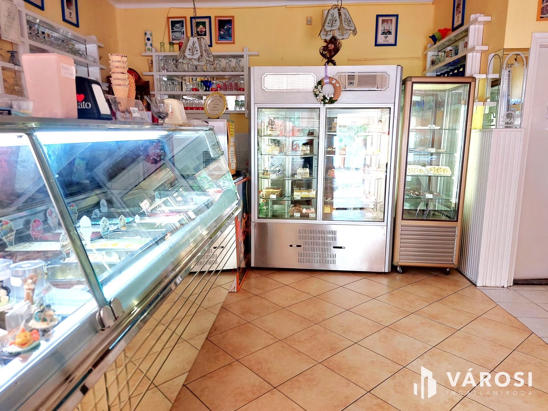 A földszinten, 83m2 alapterületen a több, mint 40 éve működő, ma is népszerű Jókai Cukrászda, amelyhez a melléképületben kialakított, professzionális berendezésekkel felszerelt cukrászüzem tartozik. A városban és környékén szervezett nagy rendezvényekre, esküvőkre a süteményeket többnyire innen rendelik. A cukrászatban használt különleges olasz fagyigépek, pasztőröző gépek és más specifikus cukrászüzemi berendezések, felszerelések magas értéket képviselnek, melyet az eladási ár tartalmaz.