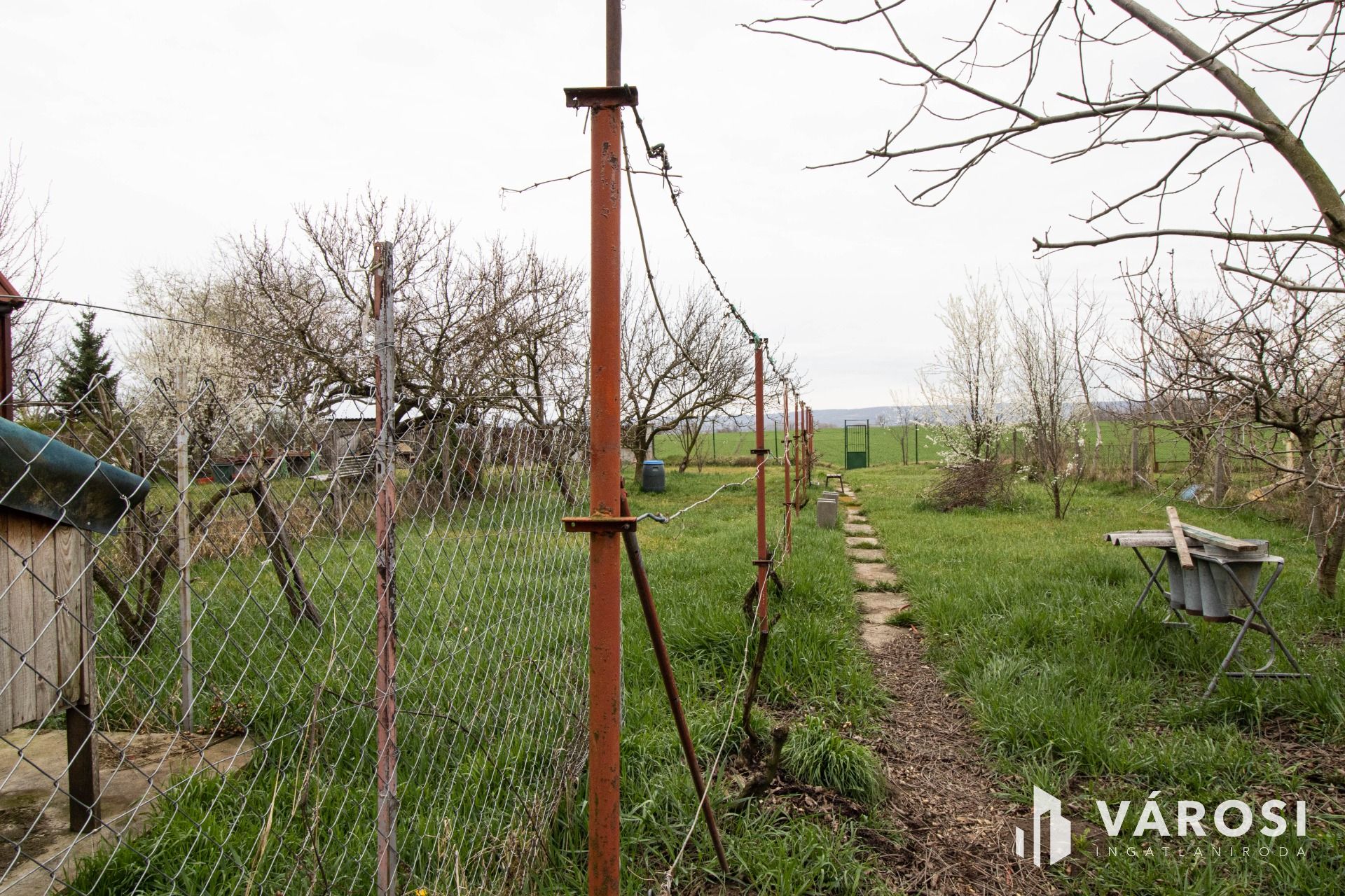 A telek körbekerített, így lehetőség van háziállatok, kapirgálósok tartására; szőlő, termő meggy, alma- és körtefa adnak árnyékot.