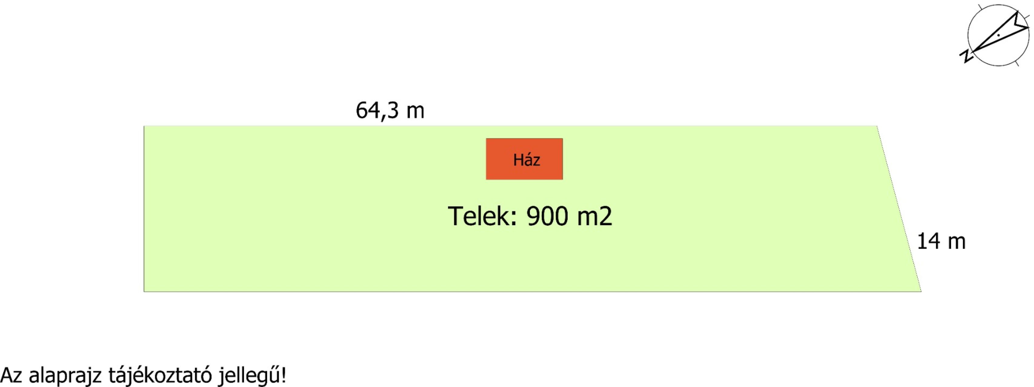 A telek murvás útról közelíthető meg, utcafront szélessége 14 méter.