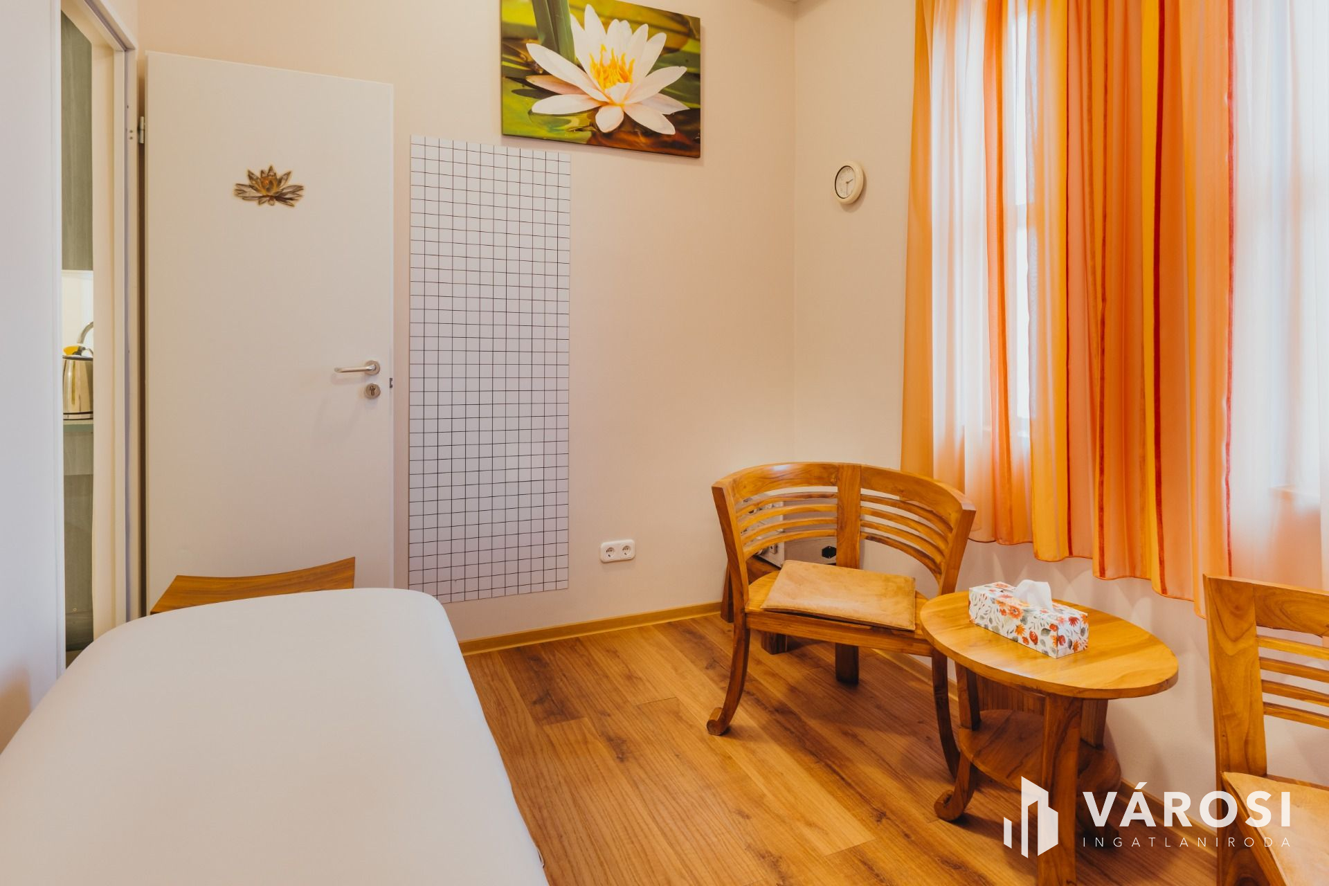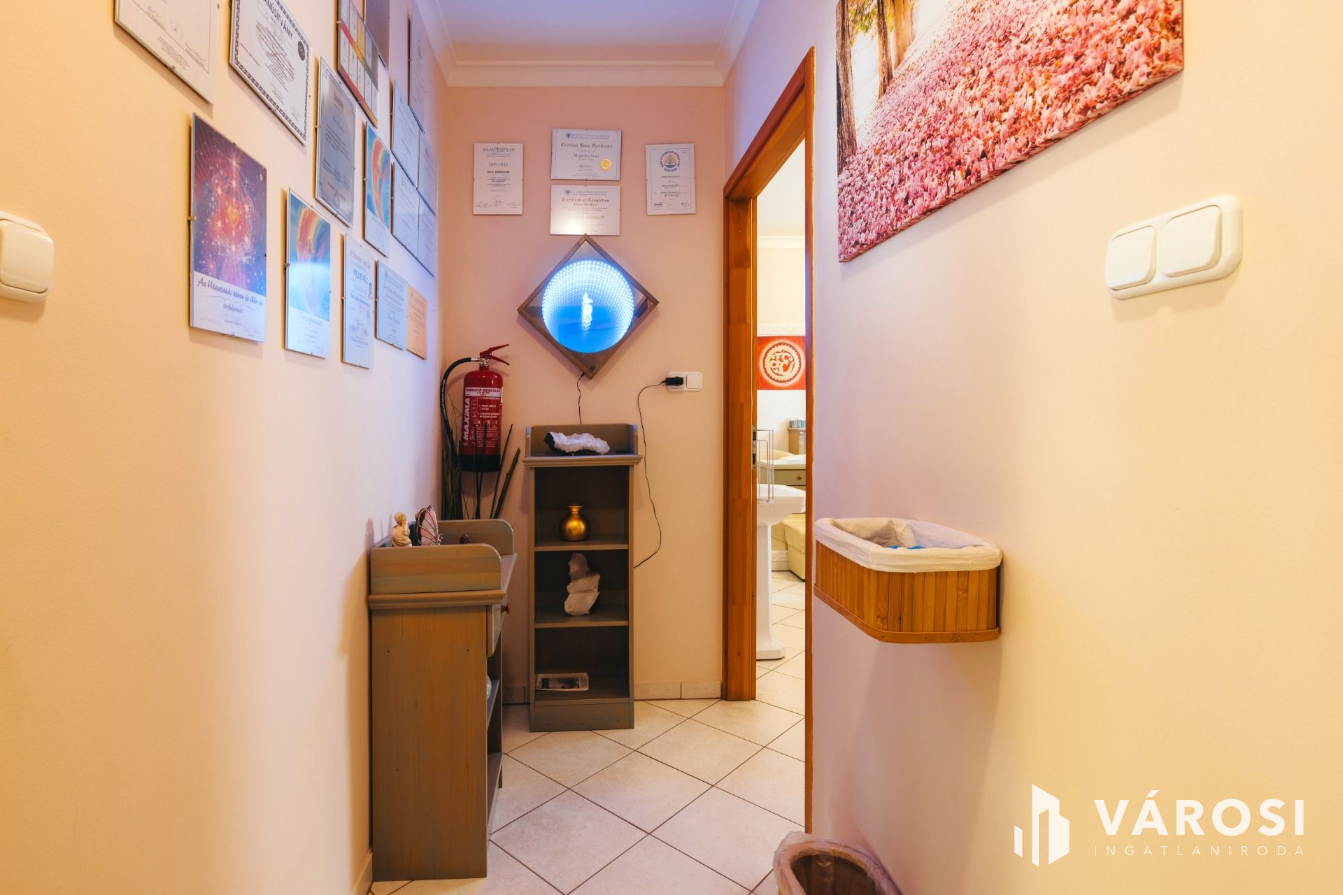 Az ingatlan közkedvelt helyisége, az egészségre jótékony hatással bíró 16m2 alapterületű sószoba, amely 6 tonna parajdi sótéglából lett megépítve. Orvosi rendelő elvárásainak megfelelően került kialakításra egy 14m2 területű kezelő, melyhez kapcsolódik öltöző és egy mosdó, érintésmentes csapteleppel.