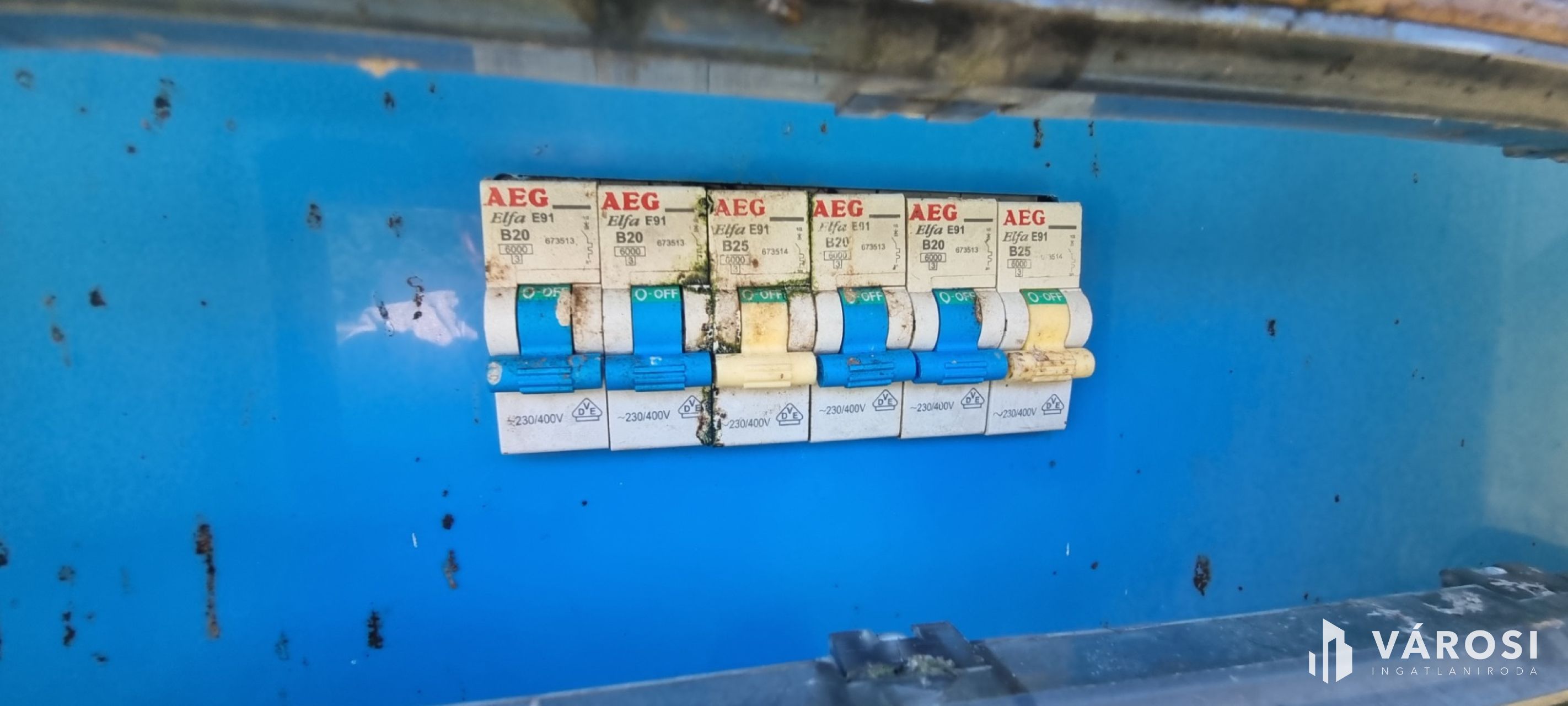 - Az ingatlan végében, számos funkcióra használható 8*5 méteres (40 nm) távirányítós kapuval nyitható fém garázs