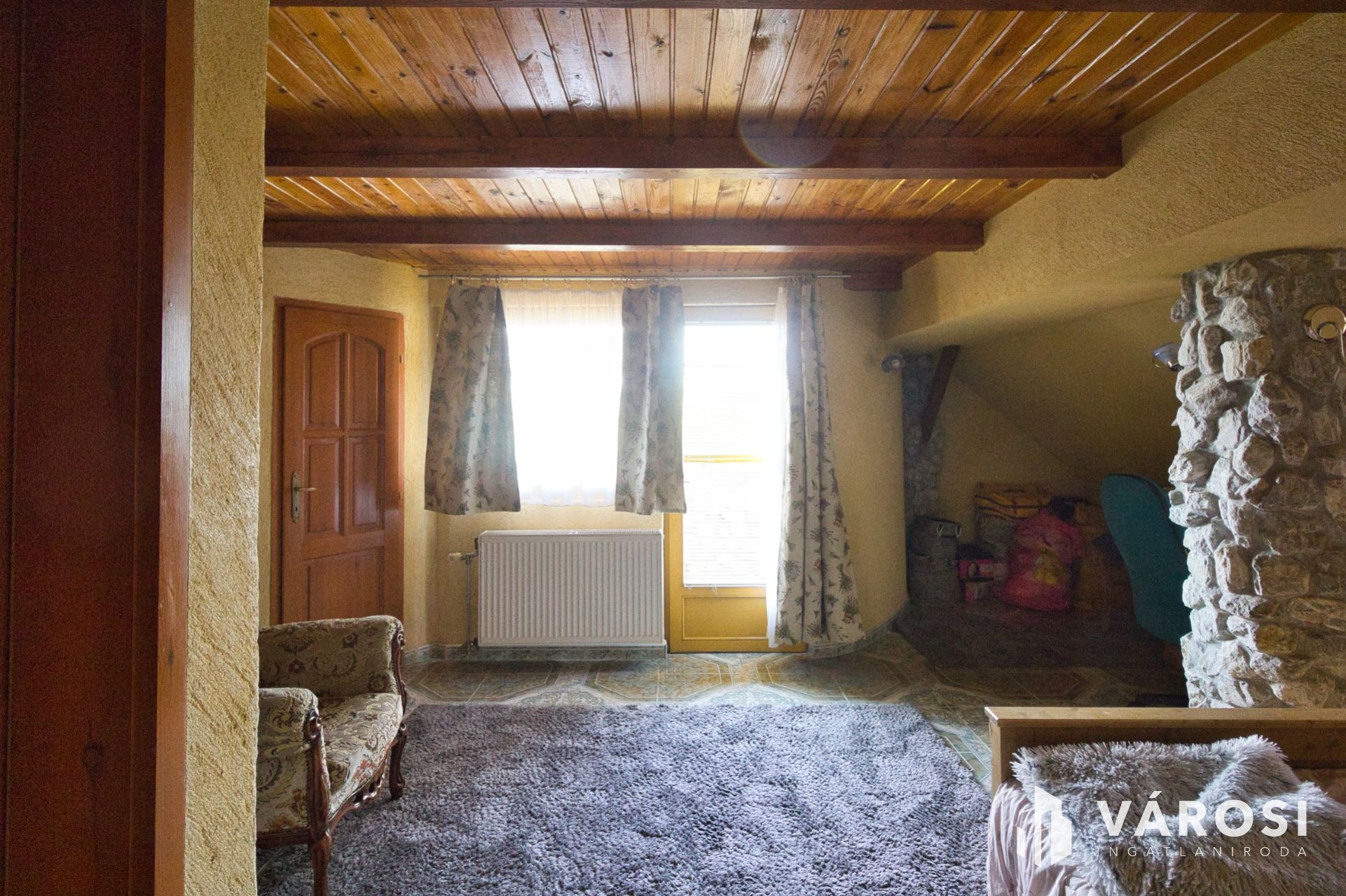 FÖLDSZINT: 1 nappali 45 m2, 1 étkező 38 m2, 1 konyha 8 m2, spájz, fürdő + WC.