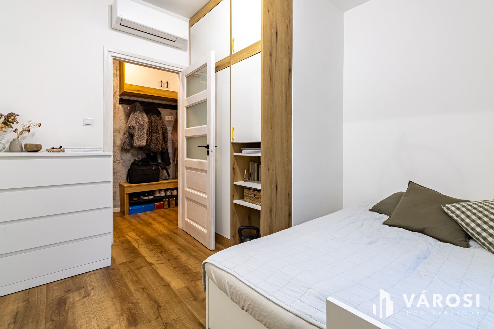Beépített gardróbszekrényekkel, légkondival, gépekkel, teljes berendezéssel kerül értékesítésre.