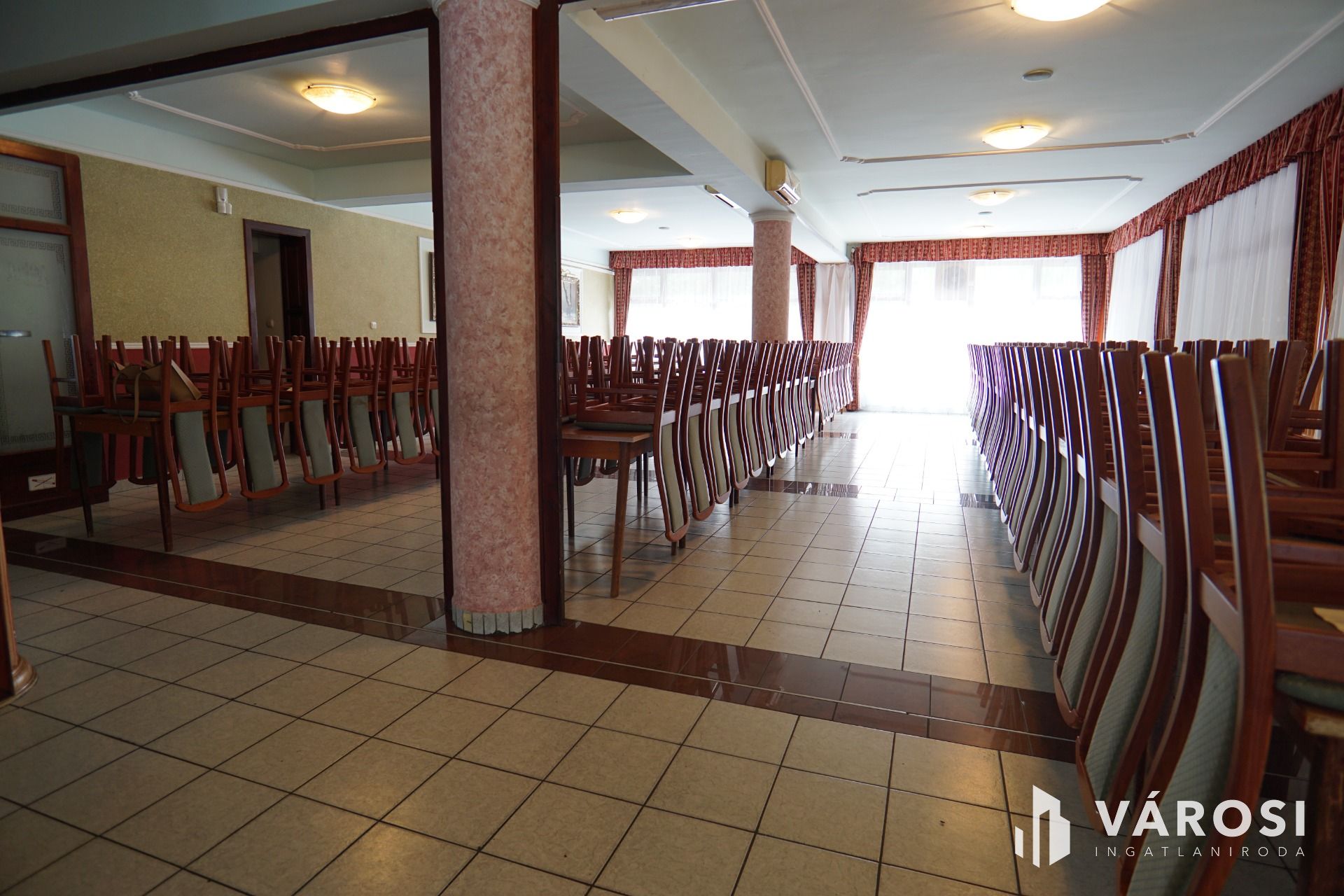 Nagykanizsától pár percre gépkocsival, közvetlen nagy forgalmú fő út szomszédságában vált eladóvá ez a lehetőségekkel teli vendéglátó egység. Funkcionálisan használható kisebb-nagyobb rendezvények lebonyolítására, (lakodalom, születésnapok, céges rendezvények..stb) valamint akár a lokációjának köszönhetően melegkonyhás étteremként és panzióként is üzemeltethető. Étterem rész befogadó képesége 180 fő, a terasz pedig további 100 fő vendég leültetésére alkalmas. A felső szinten található szobák pedig maximum 30 fő ott alvására lett kialakítva. Maga az épület beton alappal, tégla falazattal, cserép tetőfedéssel került megépítésre a 2000-es évben. Az ingatlanhoz érve léphetünk be egy közel 170m2-es fedett teraszra, ahonnan a főbejárati ajtón áthaladva érkezünk az épület központi részébe, mely 251m2-es nagyságának köszönhetően akár étterem akár rendezvényteremként is használható. Ezen légtérből megközelíthető meg a felső szint is ahol 10 külön bejáratú szoba saját vizesblokkal került kialakításra, valamint még ezen szinten háztartási helység és iroda is megtalálható. Az ingatlan teljesen klimatizált. (alsó szint, felső szint minden szoba külön-külön). Az alsó szintre visszatérve található még egy női és egy férfi illemhelység, egy nagy konyha a hozzá tartozó helységekkel és tárólokkal, hűtőházzal, személyzeti öltözővel. Az éttermi részen a dolgozok munkáját segíti, egy igényes nagy italpultrendszer is melyhez kis ablakon keresztük konyhakapcsolat is tartozik. Az ingatlan fűtése egyedi gáz cirkó, mely radiátorok és padlófűtésen keresztül szolgáltatja a meleget.
