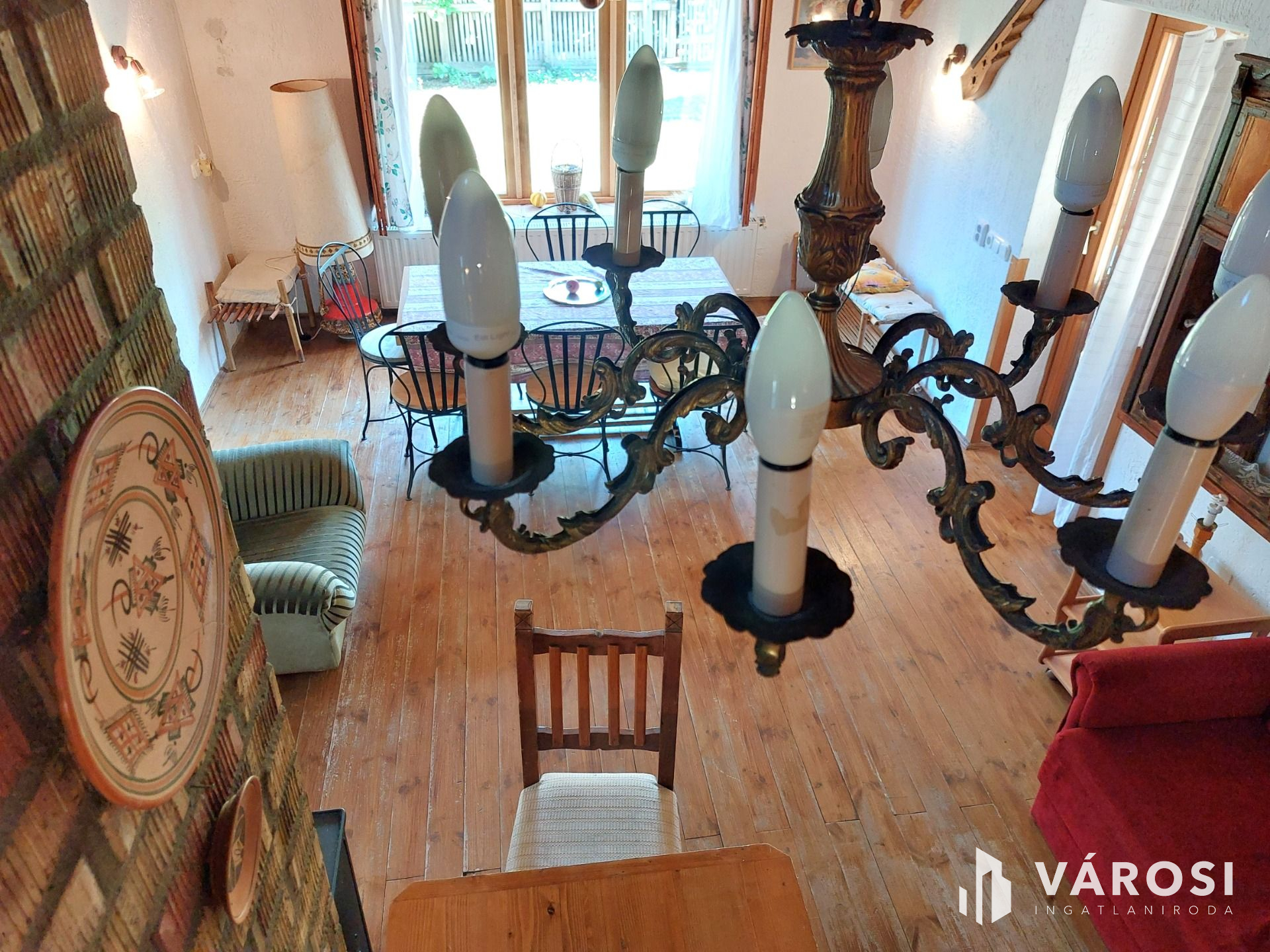 A földszinten 35m2 toszkán stílusban megálmodott nappali-konyha-étkező, tágas fürdőszoba és recepció található. A konyhasarok színes, mázas csempével kirakott, vidám, hangulatos éke az egész lakásnak. Telis-tele a ház éveken át gyűjtögetett régiségekkel, antik tárgyakkal. Ha szeretnék ezt az elbűvölő ingatlant teljes berendezéssel megvásárolni, mángorlóval, szakajtóval együtt, az külön megegyezés tárgyát képezi...