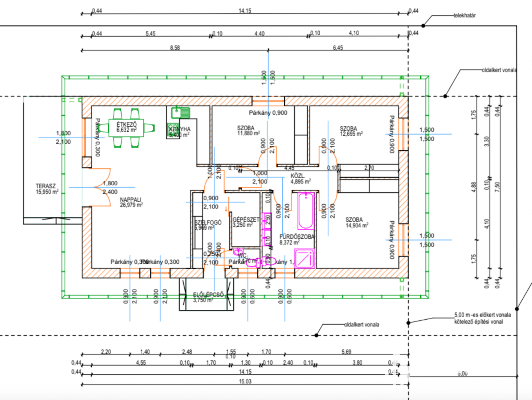 A családi ház alaprajza és műszaki tartalma napjaink igényeinek megfelelően lett megtervezve: